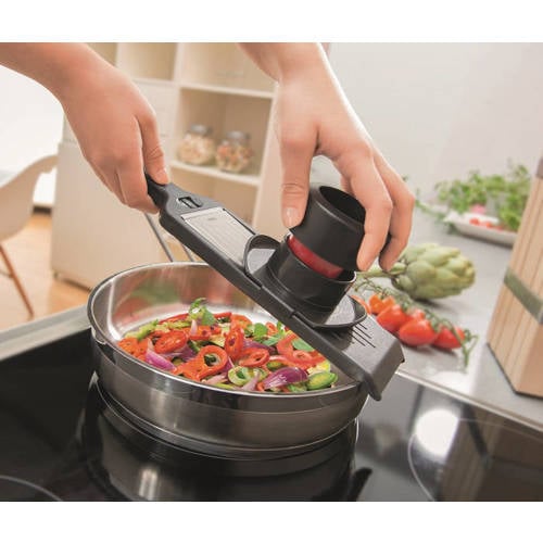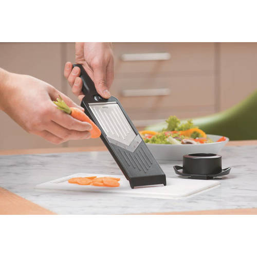 Gefu Mandoline VioliSnijd uw groenten in nette, gelijkmatige plakjes met de Gefu mandoline Violi. Deze gebruiksvriendelijke mandoline is instelbaar van 1 tot5 mm,waardoor u zelf de dikte van uw plakjes uit kunt kiezen. Daarnaast is de mandoline erg veilig in gebruik. Door de meegeleverde vingerbeschermer en de antislip voetjes kunt u veilig te werk gaan! Doordat de mandoline is gemaakt van hoogwaardig materiaal kan deze in de vaatwasser.