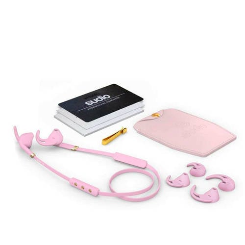 Geniet van jouw favoriete muziek tijdens je workout met de in-ear bluetooth koptelefoon van Sudio. Deze trendy oordopjes in de kleur roze zijn zweet en weerbestendig, en de lithium-ionaccu gaat tot wel 9 uur mee.Je koppelt gemakkelijk je apparaat via Bluetooth en met de in-line microfoon en afstandsbediening kun je het volume regelen, nummers overslaan en oproepen aannemen. Zo is je work-out de enige uitdaging die overblijft. Je laadt de koptelefoon op met de meegeleverde USB kabel.