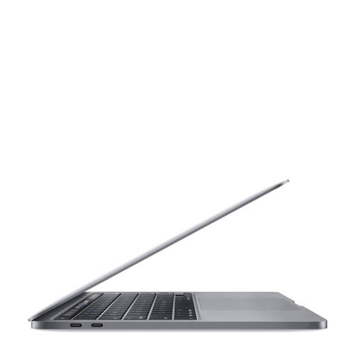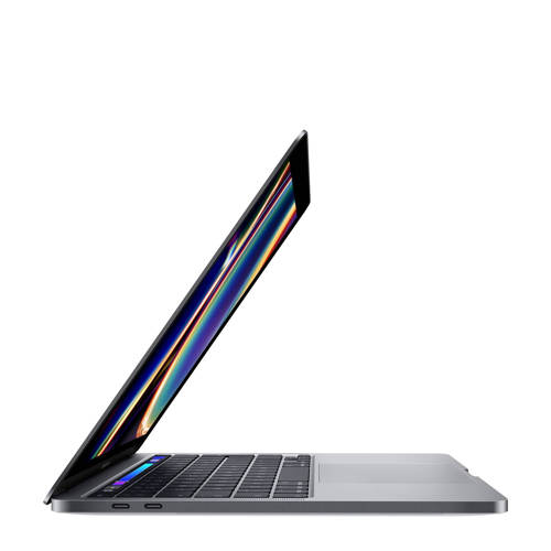 De nieuwste versie van de MacBook Pro is voorzien van een krachtige intel core processor een Retina-display en een Magic Keyboard met achergrondverlichting en Touch ID. Verder is de 13’’MacBook voorzien van Touch Bar- functies om je productiviteit te verhogen. Draagbare krachtpatserDe prestaties van de nieuwe MacBook Pro zijn ongekend, en je neemt ’m nog makkelijker mee. Ga soepeler dan ooit van idee naar resultaat met krachtige processors en geheugen, geavanceerde graphics, razendsnelle opslag en meer. Allemaal in een compact formaat van nog geen 1,4 kilogram.Iedere toets precies op zijn plekMet de 13-inch MacBook Pro doe je alles nog sneller en efficiënter. Het nieuwe Magic Keyboard heeft een vernieuwd schaarmechanisme met een key travel van 1 mm, waardoor je prettiger en preciezer typt dan ooit op een MacBook. Met de afzonderlijke Escape-toets switch je snel tussen verschillende modi en weergaven. Met de pijltoetsen in een omgekeerde T navigeer je soepel, of je nu bezig bent met coderegels, spreadsheets of een game. Dankzij de Touch Bar heb je de handigste shortcuts altijd binnen handbereik, en Touch ID zorgt voor snelle authenticatie.Een lust voor het oog. En voor het oor.Het Retina-display heeft heldere led-achtergrondverlichting en laat zwarte en witte tinten extra goed tot hun recht komen. Het display ondersteunt brede kleurweergave (P3) voor nog mooiere groene en rode tinten dan bij sRGB. En elke MacBook Pro heeft True Tone-technologie. De witbalans wordt automatisch afgestemd op de kleurtemperatuur van het omgevingslicht, zodat je een natuurlijker beeld krijgt. MacBook Pro geeft een dynamisch stereogeluid dat veel ruimtelijker klinkt en voelt dan zijn afmeting doet vermoeden. Zo worden films nog meeslepender, en vult je muziek de hele ruimte. De drie microfoons vangen je stem van alle kanten nauwkeuriger op, zodat je luid en duidelijk overkomt als je belt met FaceTime of Siri gebruikt.De volgende generatie beveiliging.Elke MacBook Pro is voorzien van de Apple T2 Security-chip, onze Mac‑siliciumchip van de tweede generatie waarmee alles wat je doet nog beter beveiligd is. Deze chip heeft een Secure Enclave-coprocessor die de basis vormt voor veilig opstarten en versleutelde opslag. In de chip zijn diverse controllers geïntegreerd, zoals de systeembeheercontroller, audiocontroller en SSD-controller. En dankzij de T2 Security-chip klinkt je MacBook Pro nog vertrouwder: ‘Hé Siri’ staat altijd voor je klaar om apps te openen, bestanden te zoeken, muziek af te spelen of je vragen te beantwoorden.