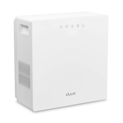 Met de Duux luchtreiniger/bevochtiger Motion verbetert je binnenklimaat. De luchtwasser combineert luchtreiniging en -bevochtiging zodat de luchtvochtigheid wordt verhoogd en deeltjes in de lucht worden verwijderd. Ongewenste geuren? Het koolstoffilter onttrekt geuren, terwijl de schijffilters stofdeeltjes en pollen opvangen. Het apparaat beschikt over een scala aan functionaliteiten en opties, zoals een watertank van 4 liter met afneembare zilverionencartridge, wasbare schijffilters, actief koolstoffilter en een instelbare hygrostaat tussen 40-70% relatieve luchtvochtigheid. Als klap op de vuurpijl is Motion geschikt voor ruimte tot 40m² en is hij voorzien van handige touchbediening, een LED matrixdisplay en een muisstille werking.Een bekroond design dat bij elke kamer pastMet een Red Dot Design Award op zak mag het geen verrassing zijn dat Motion in elke kamer of interieur past. De luchtwasser is zeer compact, heeft handige grepen waarmee je hem eenvoudig kunt verplaatsen en de behuizing is voorzien van een hoogglans afwerking.Maximale prestaties, minimaal verbruikMotion biedt maximale prestaties bij een minimaal verbruik. Je huis blijft gezond dankzij de neveluitstoot van 250ml per uur en hij werkt tot 12 uur lang zonder dat je de tank moet bijvullen. Ongewenste geuren? Het koolstoffilter onttrekt de geuren, terwijl de schijffilters stofdeeltjes en pollen opvangen. De zilverionencartridge in de watertank zorgt voor schone uitstoot.Veelzijdig en automatischDe bediening van Motion is net zo eenvoudig als reizen op de automatische piloot. Het apparaat beschikt over een instelbare hygrostaat voor zelfregulerende bevochtiging en een aparte nachtstand voor een goede nachtrust. Ben je in slaap gevallen dankzij de muisstille werking? Motion kan zichzelf automatisch uitschakelen met een timer of wanneer de watertank bijna leeg is.Elegante touchbedieningHet alfanumerieke matrixdisplay van Motion geeft alle informatie over de luchtwasser weer, inclusief de meest actuele vochtigheidsgraad en status van het apparaat. Wil je de neveluitstoot aanpassen, de nachtstand inschakelen of andere instellingen wijzigen? Druk dan op een van de touch bedieningsknoppen.