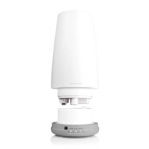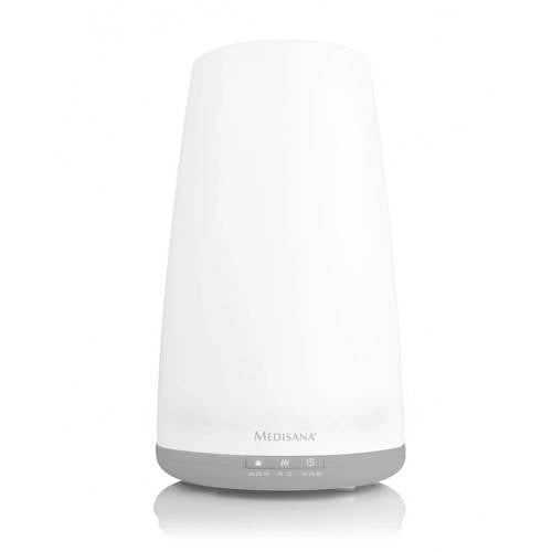 Medisana AH 670 LuchtbevochtigerMet de AH 670 Aroma luchtbevochtiger van Medisana kun je in jou huis de ideale sfeer creëren. Een combinatie van subtiele zelf toegevoegde aroma’s terwijl de luchtvochtigheid in de kamer optimaal is. De AH 670 maakt gebruik van ultrasone verneveling om jou meubels, keel, ogen of huid uitdroging te besparen. Met een watertank van 1.800 ml en vernevelingssnelheid van 200 ml/u geniet je 9 uur lang zonder te hoeven bijvullen. Is de tank leeg? Dan schakelt deze automatisch uit. Wel zo veilig. Heb je liever een kortdurend programma, dan zet je de timer gewoon op 1, 2 of 4 uur. Of houd de afstandsbediening in de buurt om ‘m zelf naar wens uit – en weer aan te schakelen.Naast verbetering van de luchtkwaliteit én verspreiding van een heerlijke geur, creëer je met deze luchtbevochtiger ook gemakkelijk net dat beetje extra sfeer door inschakeling van het wellnesslicht op een van de beschikbare kleuren.