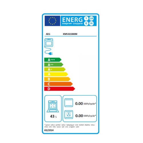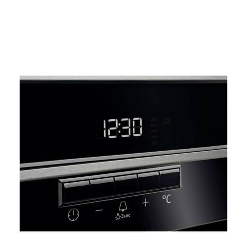 De AEG KMS361000M multifunctionele compacte hetelucht inbouw oven met geïntegreerde magnetronfunctie (1000 watt vermogen) heeft een inbouwhoogte van slechts 45 cm, een inhoud van 43 liter en een aansluitwaarde van 3000 watt. Een heerlijk sappige gebraden kip, een rijke rundsstoofpot, allemaal op de helft van de tijd van een conventionele oven klaar. De CombiQuick oven is de snellere weg naar uitzonderlijke smaken en geweldige gerechten, en combineert warmelucht met de snelheid van een magnetron voor de afwerking en texturen van een conventionele oven in een compacte ruimte. Met deze oven betekent energie-efficiënt gebruiken ook effectiever koken. Het beschikt over een nieuw convectiesysteem HotAir dat ervoor zorgt dat de hete lucht gelijkmatig door de ovenruimte circuleert. Het geavanceerde zeshoekige timerdisplay laat je de bereiding nog beter regelen. Door de start-/stoptijden in het heldere LCD-scherm in te geven, start en stopt de oven automatisch zoals je hebt ingesteld. Zo hoef je, je geen zorgen dat er iets niet goed gaat, zelfs als je even niet in de buurt bent. Door de temperatuur en tijdinstellingen voor een ruime verzameling gerechten automatisch aan te passen, heb je de complete controle over je gerechten. De AEG KMS361000M beschikt over verschillende ovenfuncties zoals: Onderwarmte, Conventioneel (boven- & onderwarmte), Ontdooifunctie, - Tweekringsgrill, Grill, Verlichting, Magnetronfunctie, Pizzafunctie, Multi hetelucht en Infrathermgrill. De oven is bedienbaar via verzinkbare knoppen en is voorzien van ovenverlichting bij deuropening en wordt geleverd met een 1 bakplaat en 1 rooster. Gemakkelijk te reinigen doordat de binnenzijde is gemaakt van easy to clean emaille. En dankzij de Isofront® Plus-deur wordt de warmte binnen de oven gehouden en blijft de temperatuur aan de buitenkant op een veilig niveau. Het RVS aan de buitenzijde is vlekvrij en met antivingerprint voorzien.- Een groot LCD-display dat dankzij de unieke recepthulpfunctie van de oven telkens weer geweldige resultaten garandeert- De Safe to Touch Plus deur zorgt ervoor dat de buitenkant van de deur koel blijft.- RVS anti-vingerafdruklaag om lelijke vingerafdrukken te voorkomenSpecificaties- AEG MaxiKlasse™ oven met de grootste binnenruimte én bakplaat in zijn klasse.- Display met timer voor in- en uitschakeling, tijdsaanduiding en temperatuurvoorstellen- Isofront® Plus koele ovendeur- Kinderbeveiliging- Automatische ovenverlichting bij deuropening- Quick start magnetronfunctie voor 30 sec. opwarmen- Easy-to-clean email- Automatisch temperatuurvoorstel - Elektronische temperatuurregeling- Gebruik van de restwarmte voor energiebesparing- Temperatuur instelbaar van 30°C - 230°C- Vermogen grill: 1900 W- Koelventilator- Automatische uitschakeling- Ventilator stopt wanneer de deur open gaat - Kleur:RVSmet antivingerprint coating- Garantietermijn: 2 jaar fabrieksgarantieAfmetingen en gewicht- Afmeting (hxbxd): 45,5x59,4x56,7 cm- Inbouwafmetingen (hxbxd): 45x56x55 cm- Gewicht: 41,2 kg