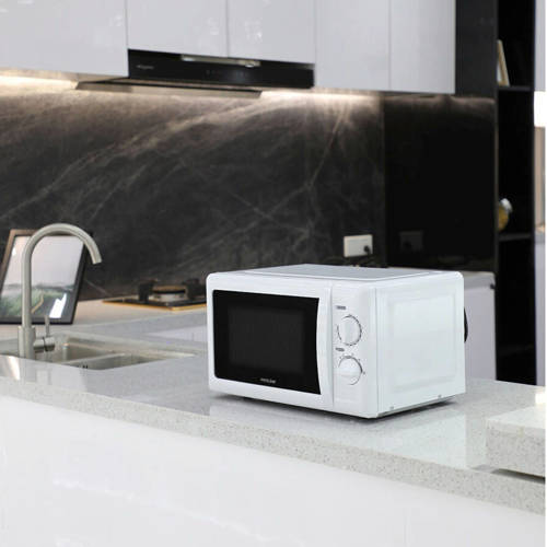 De Proline SM22 magnetron onderscheidt zich door zijn compacte afmetingen en past hierdoor in kleine ruimtes. Deze witte magnetron is volledig mechanisch te bedienen en hierdoor heel eenvoudig in gebruik. Door de roterende plateau kan de warmte gelijkmatig worden verdeeld. Het garandeert een gelijkmatige verwarming van jouw voedsel. Dankzij 6 vermogensniveaus kan je veel soorten voedsel bereiden. Hij heeft daarnaast een 30-minuten timer.