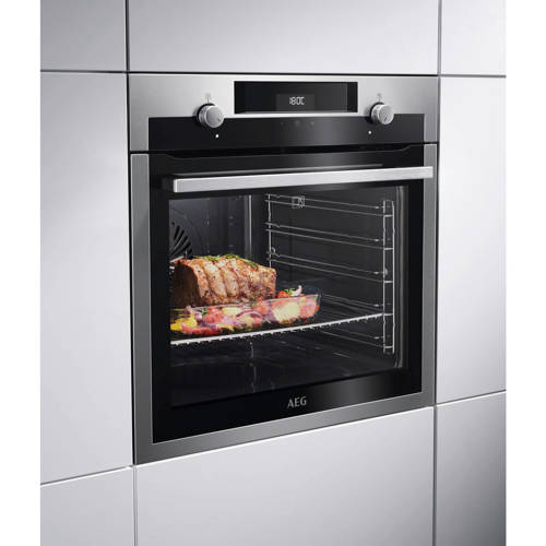 De AEG BEE435020M multifunctionele inbouw hetelucht oven heeft een inbouwhoogte van 59 cm, een inhoud van 71 liter en een aansluitwaarde van 3500 watt. Je nieuwe instrument in de zoektocht het goudbruine korstje op een aardappelgratin. De donkerbruine korst op een rundsfilet. De zachte smaak van een rijkelijke chocoladecake. Altijd weer gelijkmatige resultaten behalen vereist nauwkeurige regeling van de warmte die consistent doorheen de hele oven verdeeld wordt. In tegenstelling tot standaardovens zorgt de geavanceerde ventilatortechnologie van de SurroundCook oven ervoor dat elk gerecht exact de juiste hoeveelheid warmte krijgt. Gelijkmatig, waar de gerechten ook staan. Of het nu één of meerdere gerechten zijn. je hoeft gerechten halverwege niet meer om te draaien. De resultaten die voldoen aan uw verwachtingen; elke keer opnieuw.Met deze oven betekent energie efficiënt gebruiken ook efficiënt koken. Het beschikt over HotAir, een nieuw convectiesysteem dat ervoor zorgt dat de hete lucht gelijkmatig door de ovenruimte circuleert. Het gevolg is dat de oven sneller opwarmt en dat de bereidingstemperatuur met 20% vermindert, waardoor je tijd en energie bespaart. En ringweerstand in deze oven zorgt ervoor dat je gerechten gelijkmatig gegaard zijn, zelfs als er tot drie bakplaten in de oven staan. Zo wordt elke portie even perfect als de vorige. Het timerdisplay biedt in één oogopslag een overzicht van de status van je gerecht. Op dit duidelijke scherm kun je een alarm instellen, onmiddellijk zien hoe lang het nog duurt voordat je gerecht klaar is en de timer accuraat en precies instellen.De AEG BEE435020M oven is ontworpen met het oog op toegankelijkheid; de bakplaten kunnen snel en makkelijk in de rekken geschoven worden. En de anti-vingerafdrukcoating op de metalen afwerking voorkomt lelijke vingerafdrukken op het oppervlak. Zo zal je oven er altijd perfect schoon uit zien.Specificaties- Inbouwd display met timer voor in- en uitschakeling, tijdsaanduiding - Onderwarmte- Conventioneel (boven- &onderwarmte)- Ontdooifunctie- Grill- Multi hetelucht (vochtig)- Pizzafunctie- Multi hetelucht- Circulatiegrill- Eenvoudig te reinigen ovendeur-Temperatuur instelbaar van 50°C - 275°C- Vermogen grill: 1900 W- Totaal vermogen: 3500 W - Neerklapbare grill- Deurkoelventilator- Easy-to-clean email binnenzijde- Indrukbare verlichte bedieningsknoppen- Halogeen ovenverlichting- 1 rooster en 2 geëmailleerde bakplaten- Baktabel binnenzijde ovendeur- Elektrische kabellengte: 1,5 m Afmetingen en gewicht- Afmeting (hxbxd): 58,9x59,5x56,7 cm- Inbouwafmetingen (hxbxd): 59x56x55 cm- Gewicht: 33,5 kg