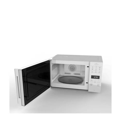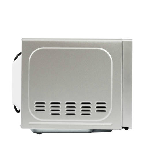 Deze Salora vrijstaande magnetron 20MSD800 is uitgevoerd in een zilverkleur heeft een inhoud van 20 liter. Je hebt keuze uit vijf magnetronstanden en acht voorgeprogrammeerde kookprogramma’s, bijvoorbeeld voor de bereiding van vlees, vis of pasta. Door de digitale timerfunctie en de binnenverlichting, weet je precies wanneer het gerecht klaar is. Met deze magnetron kun je naast opwarmen, koken en ontdooien en bakken. Door de digitale timerfunctie, die tot 95 minuten instelbaar is, en de binnenverlichting, weet je precies wanneer het gerecht klaar is. De 20MSD800 beschikt onder anderen over een draaiplateau met een diameter van 25,5 cm, een timer en een LCD display. De magnetron is makkelijk te bedienen door middel van een draaiknop en een druktoets. Specificaties- Ovenruimte: 20 liter- Vermogen magnetron: 800 watt - Magnetronstanden: 5 - Automatische kookprogramma’s 8 - Magnetron functies: ontdooien en klok - Ontdooifunctie - Draaiplateau diameter: 25,5 cm - Ovenverlichting - Timer (digitaal) - Type bediening: draaiknop en druktoets- Garantietermijn: 2 jaar Afmetingen: (hxbxd): 25,9 x 44 x 34,5 cm