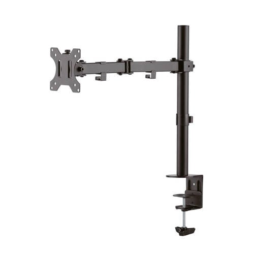 Met deze NewStar monitorarm, model NM-D335BLACK, bevestigt u een flatscreen aan het bureau via de bureauklem of bureaudoorvoer. Tevens kunt u ervoor kiezen de monitor op het bureau te plaatsen op de bureauvoet.\\n\\nDoor gebruik te maken van een monitorarm profiteert u optimaal van de mogelijkheden van uw monitor. De monitorarm is eenvoudig in hoogte en diepte te verstellen. Tevens kunt u het scherm kantelen (90°), zwenken (180°) en roteren (360°). Hierdoor creëert u de ideale ergonomische werkhouding. Dit verkleint de kans op nek- en rugklachten. Kabels zijn netjes weg te werken aan de onderzijde van de horizontale arm.De NM-D335BLACK heeft 1 draaipunt en is geschikt voor schermen t/m 30' (76 cm). Het draagvermogen van de arm is 10 kg per scherm. Dit product is geschikt voor schermen met een VESA gatenpatroon van 75x75 mm of 100x100 mm. Heeft u een afwijkend (groter) gatenpatroon, dan kunt u dit oplossen met een van onze VESA verloopplaten.
