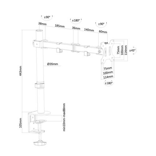 Met de NewStar NM-D135BLACK monitorarm bevestig je een monitor aan jouw bureau via een bureauklem of bureaudoorvoer. Door gebruik te maken van een monitorarm profiteer je optimaal van de mogelijkheden van jouw monitor. De monitorarm is eenvoudig in hoogte en diepte te verstellen. Tevens kun je het scherm kantelen, zwenken en roteren. Hierdoor creëer je de ideale ergonomische werkhouding. Dit verkleint de kans op nek- en rugklachten. Kabels zijn netjes weg te werken aan de onderzijde van de horizontale arm.De NM-D135BLACK heeft 3 draaipunten en is geschikt voor schermen t/m 30' (76 cm). Het draagvermogen van de arm is 8 kg per scherm. Dit product is geschikt voor schermen met een VESA gatenpatroon van 75x75 mm of 100x100 mm.