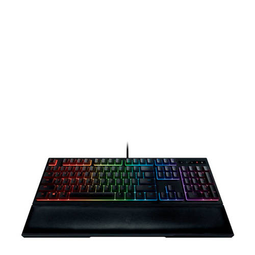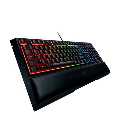 Razer Ornata Chroma. Het volledig nieuw ontworpen Razer Mecha-Membrane-toetsenbord combineert zacht aanvoelende rubberen dome-toetsen met de duidelijk voelbare klik van mechanische schakelaars voor een snelle toetsregistratie. Middelhoge toetsen voor snellere toetsregistratie. De Razer Ornata Chroma heeft speciaal ontworpen kortere toetsen, zodat je handelingen sneller worden geregistreerd. Dit betekent dat je vingers vrij over de toetsen kunnen bewegen zonder dat je een toetsaanslag overslaat. Aanpasbare Razer Chroma verlichting met 16,8 miljoen kleurenopties. De Razer Ornata Chroma is uitgerust met de Razer Chroma-technologie, die meer biedt dan alleen spectaculaire verlichtingseffecten. Met de interactieve in-game effecten ga je nog meer op in je spel, terwijl je toetsenbord op jouw spel reageert.Ergonomische polssteun voor langdurig comfort tijdens het gamen. Deze speciaal voor de Razer Ornata Chroma ontworpen polssteun heeft ergonomische eigenschappen. Hoe lang en intensief je ook speelt, het blijft altijd comfortabel.Kenmerken: Razer Mecha-Membrane-technologie. Middelhoge toetsen. Razer Chroma-achtergrondverlichting. Ergonomische polssteun. Met Razer Synapse. Volledig programmeerbare toetsen met on-the-fly macro-invoer. Roll-over van 10 toetsen. Speciale gamemodus. Anti-ghostingfunctie voor tot 10 gelijktijdige toetsaanslagen.