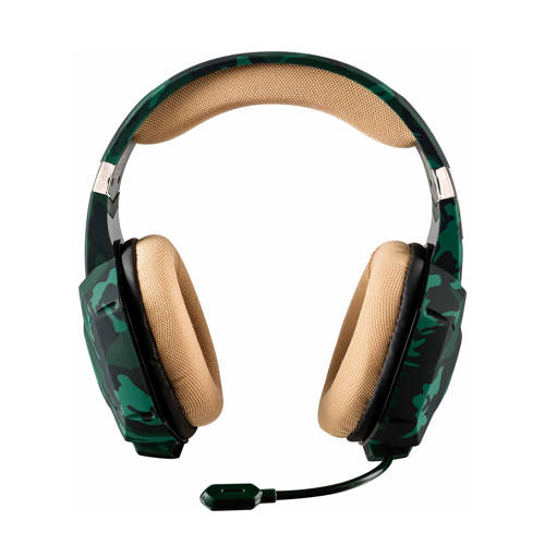 Gaming-headset met oorkussens in plaatgaasstructuur, flexibele microfoon en krachtige bas.