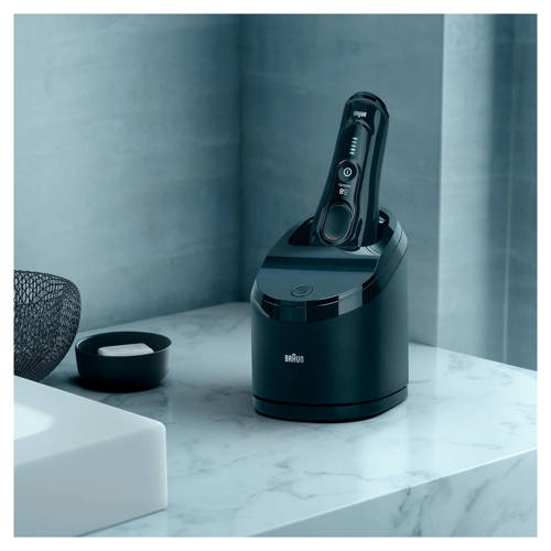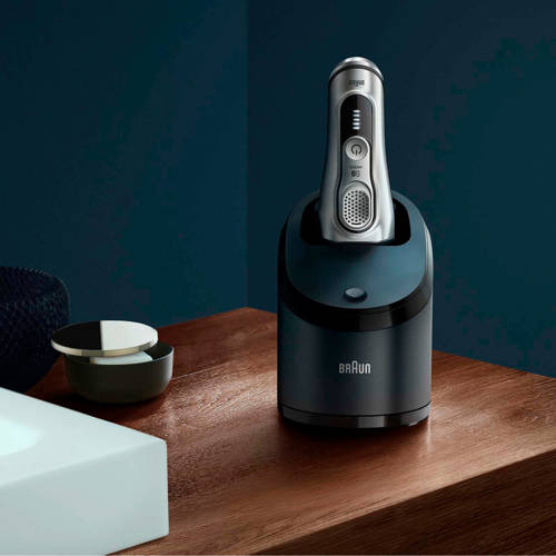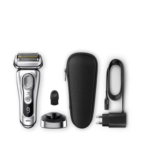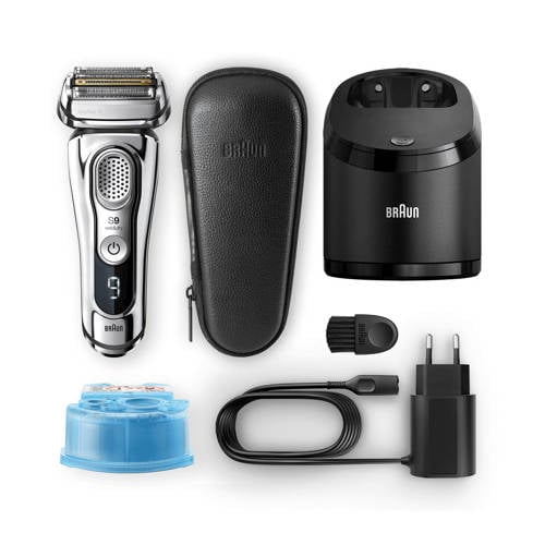 Ontdek de efficiëntie van de Braun Series 9. Dit elektrische scheerapparaat zorgt met zijn 5 scheerelementen dat alle haren in een beweging meegenomen worden. De Series 9 is geschikt voor de natte en droge huid en er kan gekozen worden voor een milde of gladde scheerbeurt. De Braun Series 9 wordt gemaakt in Duitsland en heeft de mogelijkheid om wel 60 minuten draadloos te scheren, dat is 20% langer dan de vorige Series 9.Kenmerken:Lift & Cut trimmerGecoat met titanium. Grijpt zelfs platliggend haar.Direct&Cut trimmerScheert haartjes af die in verschillende richtingen groeien.Skin GuardBeschermt de huid bij elke beweging2x Opti-Foil™Grijpt zelfs het laatste haartje, voor een soepele scheerbeurt.10-D-flexkopOnafhankelijke flexibele scheerelementen gemonteerd op een 10-directioneel flexibele kop: MicroMotion gecombineerd met MacroMotion voor maximale aanpasbaarheid aan het gezicht. Zo krijg je meer contact met de huid voor een grondigere scheerbeurt.Geavanceerde 32-bit chipPast het vermogen van het scheerapparaat aan op je baard, zodat zelfs de meest dikke baard kan worden geschoren.Aanpassing baarddichtheidLeest jouw baard en past het vermogen daar op aan SyncroSonic™-technologie met 40.000 transversale bewegingen per minuut. Vermenigvuldigd met sonische technologie. De gepatenteerde SyncroSonic™-technologie van Braun leest je baard en past zich eraan aan. Controleert de dichtheid 160 keer per minuut. En is extra krachtig waar dat het meest nodig is.Trimmer met titanium afdeklaagTitanium is een uiterst duurzaam metaal en zeer bestendig tegen corrosie. Bovendien ziet het er heel mooi uit. Daarom gebruikt Braun het als afdeklaag voor de trimmer.LED displayAlle informatie in een oogopslag: het nauwkeurige LED-display geeft de status van de batterij, de hygiëne en het reisslot aan.Clean&Charge-systeemVoor een scheerapparaat dat elke dag als nieuw aanvoelt. Het Clean&Charge-station reinigt, smeert en droogt je scheerapparaat hygiënisch en laadt het op met één druk op de knop.