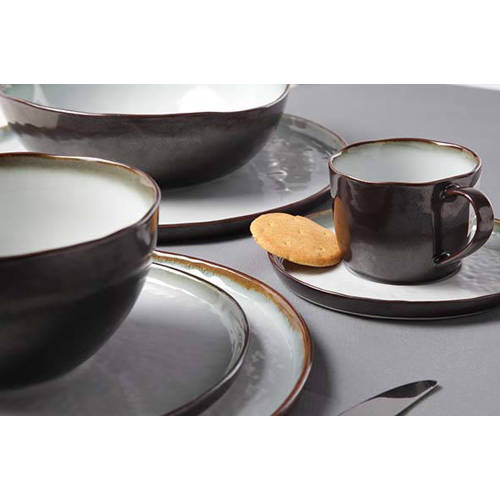 Deze serviesset van Cosy & Trendy behoort tot de Plato collectie.Cosy & Trendy is een innovatief merk op het gebied van huishoudproducten. Het merk houdt zowel rekening met innovatie als met een mooi design. De lijn Cosy & Trendy Plato is gemaakt van hoogwaardig aardewerk. Deze set bestaat uit;- 6 Dinerborden 27.5 cm- 6 Ontbijtborden/Dessertborden 21.5 cm- 6 Kommen D14 x H8 cm- 6 Kopjes 19 clHet design van deze collectie is geïnspireerd door de Oosterse cultuur. De collectie heeft een organische textuur en een licht-donkercontrast. Daarnaast is alles van de Plato collectie vaatwasserbestendig.