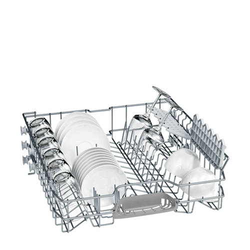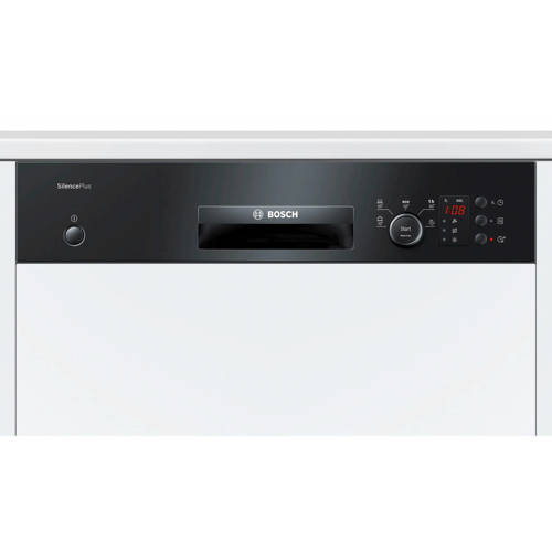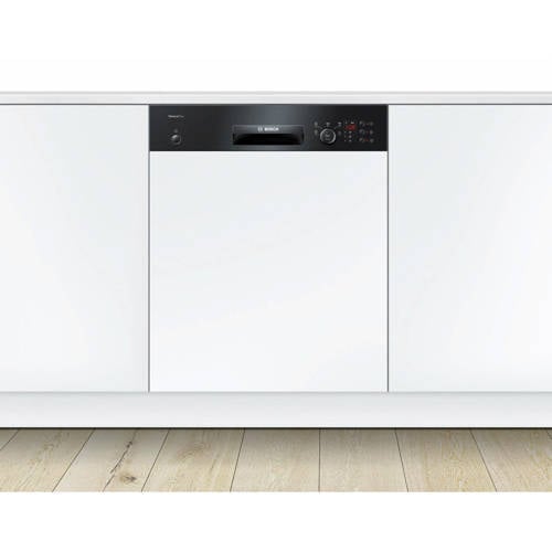Alle gemak met de Bosch SMI25DB01E geïntegreerde vaatwasserAfwassen gaat makkelijker dan ooit met de Bosch SMI25DB01E. Hij is fluisterstil met de EcoSilenceDrive motor. Inruimen doe je makkelijk met de Vario-korf en je glazen worden voorzichtig behandeld door het glasbeschermingssysteem.Aan de slagDe Bosch SMI25DB01E is een inbouw vaatwasser die valt onder de energie efficiëntieklasse A++. Met zijn moderne design is deze vaatwasser een mooie toevoeging aan je keuken. Het bedieningspaneel is voorzien van draaiknoppen en een LED scherm met resterende tijd indicatie. Je ziet altijd hoe lang de wasbeurt nog duurt. Je kan zelf bepalen wanneer de Bosch SMI25DB01E begint met het startuitstel. Pas beginnen wanneer jij niet thuis bent? Geen probleem! Met een geluidsniveau van 46 dB is dit een stille vaatwasser.Inruimen en programma's van de Bosch SMI25DB01E vaatwasserAan de slag! De Bosch SMI25DB01E biedt ruimte aan 13 couverts. Handig aan het deze vaatwasser, is dat hij een variokorf heeft. Deze korf kan je zowel onder - als boven in de vaatwasser plaatsen en biedt extra ruimte voor je bestek. De vaatwasser heeft de volgende programma's:NormaalEconomyIntensiefVoorwasSnelJe kan kiezen uit 5 temperatuurinstellingen tot 70 graden. Uniek aan deze Bosch vaatwasser is het glasbeschermingsprogramma, zodat je ook je mooie glazen met een gerust hart in kan ruimen. Met de doseerassistent lost de vaatwastablet altijd goed op. De tablet valt in een bakje aan de bovenkorf en lost daar op. Zo wordt het vaatwasmiddel goed verspreid voor een extra schoon resultaat.Zuinig afwassen op jouw manierMet de Bosch SMI25DB01E inbouw vaatwasser kan je flexibel inruimen één snelle programma's draaien. Zelf een kleine vaat kan je zuinig laten afwassen.