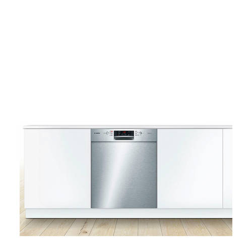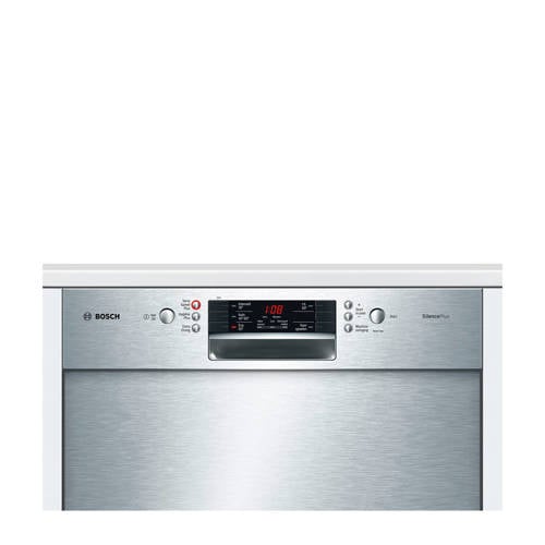 De Bosch SMU45GS01N onderbouw vaatwasser 60 cm in RVS is een extra stille A++ vaatwasser. Deze vaatwasser heeft een capaciteit van 12 standaard couverts. De 5 programma's bieden een ruime keus nml.; Intensief 70 °C, Auto 45-65 °C, Eco 50 °C, 1h. 65 °C en Voorspoelen. Bovendien voorzien van 3 speciale functies nml. VarioSpeedPlus, HygiënePlus en ExtraDroog. Voor reiniging en onderhoud zorgt de speciale MachineCare functie. De DoseerAsssistent zorgt ervoor dat het vaatwasmiddel gelijkmatig wordt verdeeld.Onderscheidende kenmerken;Extra Droog: een optie om vaat die moeilijk te drogen is toch goed droog te krijgen.Stil programma: bijzonder stille werking met een geluidsniveau van 48dB.VarioFlex korven: de verstelmogelijkheden zorgen voor meer flexibiliteit in de boven- en onderkorf.7-segment Display: geeft de resttijd aan en standaardinformatie, zoals de bijvul-status.Indeling;-Extra ruime zilverkleurige servieskorven-VarioFlex-korven-RackMatic: in hoogte verstelbare bovenkorf (3 standen)-2 Neerklapbare bordensteunen bovenkorf-4 Neerklapbare bordensteunen onderkorf-Vario-bestekkorf in onderkorfVeiligheid;-AquaStop waterbeveiliging: de meest betrouwbarewaterbeveiliging met levenslange garantie-EasyLock deursluiting-Kinderbeveiliging: toetsvergrendelingEcoSilence DriveOm het reinigen nog efficiënter uit te voeren, ontwikkelde Bosch de zuinige EcoSilence Drive-motor. De EcoSilence Drive werkt zonder borstels, is zeer stil en verbruikt minder stroom.Inbouwafmetingen (hxbxd) : 81,5-87,5 x 60,0 x 55,0 cm