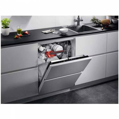 AEG FSS5261XZ Quickselect Airdry InbouwvaatwasserDe QuickSelect vaatwasser van AEG is ontworpen voor gebruiksgemak en een schone vaat. Kies met de schuiver gemakkelijk een cyclustijd en eventuele optionele behandelingen. In een paar seconden kies je de geschikte instellingen en laat je de machine de rest doen. Geniet van smetteloze resultaten op het meest geschikte moment.Moeiteloze cyclusinstelling met QuickselectQuickSelect maakt een optimale bediening van de vaatwasser mogelijk. Kies een cyclustijd met de schuiver en voeg met een tik extra behandelingen toe. De machine doet de rest. Reiniging op maat op het meest geschikte moment. En een vlekkeloze vaat.Natuurlijk drogenDe nieuwe Airdry-technologie geeft u een uitzonderlijke droogprestatie met een natuurlijke luchtstroom. De deur opent automatisch 10 cm in de laatste fase van de cyclus; als de vaat schoon is. Het droogt uw vaat op een natuurlijke manier en bespaart zo ook op energiekosten.Snelle en efficiënte prestatieDeze vaatwasser biedt u een perfecte prestatie - snel, dankzij het speciale programma van een half uur.De status van uw afwas in een oogopslagDeze volledig integreerbare vaatwasser beschikt over een intelligente manier om u over de status van uw vaat op de hoogte te brengen. De beam-on-floor-technologie projecteert een rood licht op de vloer wanneer de cyclus nog aan de gang is. Wanneer het apparaat klaar is, dan wordt er een groen licht geprojecteerd. Eenvoudig en efficiënt.Efficiënte reiniging. In iedere cyclusDe speciale sensor in het AutoSense-programma detecteert hoe vuil uw vaat is en hoe grondig die moet gereinigd worden. Met gebruik van precies de juiste hoeveelheid water, energie en tijd. Hierdoor wordt de vaat op de meest milieuvriendelijke manier gewassen.