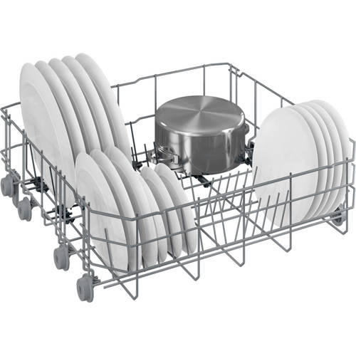 In hoogte verstelbaar bovenste rekNooit meer puzzelen hoe je grote schalen of hoge wijnglazen in de vaatwasmachine krijgt. Met het Acrobat-systeem kun je het bovenste rek op drie verschillende standen zetten om meer ruimte te maken voor grote schalen op het onderste rek.Acht keer sneller wassenSoms heb je geen tijd om te wachten op een volledige wascyclus. De Fast+ functie versnelt de wascyclus tot 3 keer met optimale prestaties, wat betekent dat je in een mum van tijd kunt wassen en serveren.Meer ruimte voor potten en pannen in het onderste rekDe bestekbak is een handige uitvinding, maar zit in de weg als je een grote pan op het onderste rek wilt zetten. De schuivende bestekbak lost dat probleem op. Je kunt de bak naar links en naar rechts schuiven om plaats te maken voor grotere dingen.Extra ruimte voor potten en pannenBij het koken gebruik je vaak potten en pannen van verschillende grootte en je hebt een vaatwasmachine nodig die dat begrijpt. Met de eenvoudig inklapbare steunen kun je gemakkelijk ruimte maken voor al die grote potten en pannen. De tijd dat je grote pannen met de hand moest afwassen is voorbij, en gelukkig maar!Gemakkelijk te openen dispenserBezeer je vingers niet bij het openen van de afwasmiddeldispenser. De schuivende afwasmiddeldispenser kun je gemakkelijk openen en sluiten, zodat afwasmiddel toevoegen in een oogwenk is gebeurd.