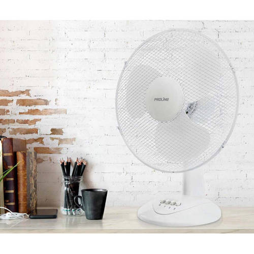 De Proline DPF23 tafelventilator heeft een korf met een diameter van 23 cm en 3 aerodynamische bladen. De ventilator heeft 2 standen, zodat je kan bepalen hoe hard de DPF23 lucht door de kamer blaast.