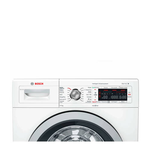 De Bosch WAWH2643NL wasmachine met een energieklasse A+++ (-30%), is gemakkelijk op afstand te bedienen met de Home Connect App. Je kunt de wasmachine beheren, instellen waar en wanneer je maar wilt. Zo kun je de wasmachine aanzetten op je werk en is de was klaar wanneer je thuiskomt of wanneer het jou uitkomt. Op de app kun je bijvoorbeeld met de Easy Start functie het soort stof en de kleur instellen en de wasmachine kiest zelf het meest geschikte programma, voor een optimaal resultaat. En uiteraard kun je de status van je was op afstand bekijken. Door de Home Connect App weet je altijd precies wanneer de was klaar is en hoef je niet steeds naar de machine te lopen om te kijken of hij nog draait. Verder met 1600 toeren (instelbaar) en een maximale belading van 9 kg.Ook is de WAWH2643NLvoorzien van groot overzichtelijk LED-display voor programmaverloop, temperatuurkeuze, centrifugeersnelheid, resttijdweergave en 24 u eindtijduitstel, i-Dos instellingen en verbruiksindicatie.Home Connect: bedien je huishoudapparaten, waar je ook bent.Met Home Connect kun je huishoudelijke apparaten van verschillende Europese merken gemakkelijk en intuïtief via je smartphone of tablet bedienen. Je hebt geen speciale smartphone of tablet nodig, het enige wat je nodig hebt is een apparaat met de Home Connect functionaliteit en de app. Deze is gratis te downloaden, zodat je vanaf je werk je oven kunt aanzetten om voor te verwarmen of in de supermarkt wilt weten of er nog spoelglansmiddel voor je vaatwasser moet meenemen. Je kunt zelfs in je koelkast kijken, het is nu allemaal mogelijk met Home Connect.Programma’sJe hebt de volgende speciale programma’s tot je beschikking: Nachtprogramma, Sport, Extra snel 15', Snel+mix, Automaat, Allergie+, Dekbed, Wol handwas en Fijn/Zijde. Verder met standaard en aanvullende programma's: voor maximaal gebruiksgemak fijne was, kreukherstellend, Pwitte-/bonte was, Wol-handwasprogramma, SpeedPerfect, sport, start / bijvullen, starttijduitstel, temperatuurkeuze en voorwas.i-DOS intelligent doseersysteemWater besparen door wasmiddel te besparen: het unieke intelligente i-DOS doseersysteem meet exact de benodigde hoeveelheid vloeibaar wasmiddel. Speciale sensoren meten in de automatische programma's het gewicht en het soort textiel van het wasgoed en zelfs de mate van bevuiling. Je wasgoed wordt gewassen met de optimale hoeveelheid wasmiddel. En doordat je nooit te veel wasmiddel gebruikt, hoeft de machine ook niet extra te spoelen om eventuele zeepresten uit het wasgoed te verwijderen. Met i-DOS kun je wasmiddel en tot wel 7.062 liter water besparen (geschatte jaarlijkse besparing met i-DOS in plaats van handmatige dosering met een conventioneel fijnwasprogramma bij gemiddeld 220 wassen per jaar.Comfort en Zekerheid- i-Dos: automatische dosering van wasmiddel en wasverzachter- EcoSilence Drive: de meest energiezuinige en stille motortechnologie- 10 jaar garantie op de koolborstelloze EcoSilence Drive motor- AquaStop waterbeveiliging: de meest betrouwbare waterbeveiliging met levenslange garantie- VarioTrommel: zacht en efficiënt wassen- varioPerfect: tijd- of energiebesparing bij maximaal wasresultaat- activeWater: zuinig en nauwkeurig watermanagement- Trommelverlichting: ideaal in een donkere omgeving- Zelfreinigende wasmiddellade- AntiVibration Design: meer stabiliteit en stilte- Trommelreiniging: optimale verzorging en reiniging van de trommel en interieur, met herinneringsfunctie- EcoFeedback: indicatie van energie- en waterverbruik- Bijvulfunctie: Iets vergeten? Eenvoudig wasgoed toevoegen tijdens het programma.- AquaSensor: voor optimale spoelresultaten- DoorstroomSensor: voor optimaal waterverbruik- Indicatie overdosering wasmiddel- Schuimherkenning: detecteert overdosering- Waterniveau-automaat- Kinderbeveiliging op de deur- Signaal einde programma- TouchControl toetsen incl. LED indicatie: Temperatuurkeuze, Toerentalkeuze, Voorwas, ecoPerfect, speedPerfect, I-dos1, I-dos2 en 24 u Eindtijdkeuze- Comfortabele deurvergrendeling: eenvoudig te openen en te sluiten