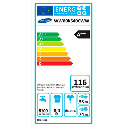 Met deze SamsungWW80K5400WW/EN Addwash is het vergeten van die ene blouse of jeans geen probleem meer! Je kunt snel en gemakkelijk iets toevoegen wanneer de was al draait, tijdens het gehele wasprogramma. Heb je een wasje met de hand gewassen, met de AddWash kun je deze eenvoudig alleen mee laten spoelen en centrifugeren. Met de slimme wasmachines van Samsung wordt wassen makkelijker, efficiënter en energiezuiniger dan ooit. Met de EcoBubble-technologie en wordt de was zelfs met koud water in minder dan een uur schoon. Verder met een superzuinige energieklasse A+++ (-40%), slechts 116 kWh energieverbruik per jaar, 1400 toeren (instelbaar) en een maximale belading van8 kg. De Crystal Gloss deuren, de design draaiknop en de Ice Blauwe kleur van het display, geven deze wasmachine een elegante en 'design' uitstraling. Verder heeft WW80K5400WW/EN een uitgestelde einde functie, resttijdindicatie op het LED display en geeft een eindsignaal (die uitschakelbaar is). En aan veiligheid is ook gedacht, de machine beschikt over een Diamond Drum-trommel, een overloopfunctie, een aquastop en kinderbeveiliging zodat de machine voor kleine handjes beveiligd is. Verder is de machine uitgevoerd met digital inverter motor en is hij voorzien van Ecodrum Clean technologie. (trommelreiniging)Het toerental is instelbaartot 1400 tpmen je hebt 14 automatische programma's tot je beschikking. En mocht er toch nog een probleem ontstaan dan helpt Smart Check je uit de brand - Stel je eens voor, nooit meer een monteur te hoeven bellen wanneer er een probleem is, omdat je wasmachine je als eerste vertelt wat er aan de hand is. De nieuwe Samsung wasmachine is uitgerust met de innovatieve Smart Check. Smart Check detecteert fouten en stelt daarvan al in een vroeg stadium de diagnose, waarna eenvoudige oplossingen voor het probleem worden aangedragen met behulp van een smartphone met LED-scanning. Je hoeft niet eens je gebruiksaanwijzing te raadplegen - je kunt het probleem al verhelpen voordat het tot echte hoofdpijn leidt.EcoBubbleDeEcoBubble technologie maakt het mogelijk om extra te besparen op het energieverbruik. De bubbels dringen diep door in stoffen om vuil makkelijk te verwijderen, zelfs in koud water van 15 graden.Crystal GlossMaak kennis met de nieuwe Crystal Gloss-deuren, in doorzichtig wit. Perfect zicht op je wasgoed, dat achter veilig en stevig glas in alle stilte wordt gewassen. Handig: het handvat zit 45 graden hoger, zodat je de deur eenvoudig kunt openen.Digital inverter motorDe digitale motor met inverter technologie is zuiniger dan ooit met energie, maakt minimaal geluid en gaat bijzonder lang mee. Met ook 10 jaar fabrieksgarantie op deze motor. EcoDrum Clean technologieOok de trommel blijft schoon! De EcoDrum Clean technologie zorgt ervoor dat de trommel schoon blijft, zonder het gebruik van agressieve chemicaliën. Als je zelf iets moet doen, krijg je daarvan automatisch een melding.