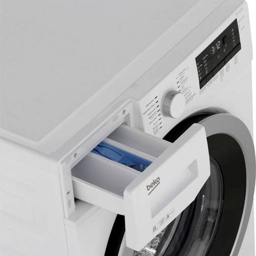 Deze Beko WTV8712BLS wasmachine is voorzien met het zuinige A+++ energielabel en je kunt er 8 kg wasgoed in wassen. Verder kun je het toerental in 4 stappen instellen (600-800-1200-1400 tpm). En met de 15 beschikbare wasprogramma is er altijd wel een geschikt voor die specifieke wasbeurt. Neem bijvoorbeeld het Outdoor/Sport programma, het ideale wasprogramma na een goede workout, of het Fast+ programma, om even snel een wasje te draaien. Bij maar liefst 3 verschillende programma's wordt er automatisch stoom toegevoegd aan het einde of het begin van het wasprogramma. Neem bijvoorbeeld het Shirts + Steam programma, door middel van toevoeging van stoom middels het speciale patroon in de trommel verwijdert je machine makkelijk vlekken en overig vuil. Bijkomend voordeel, na wassen hoef je nauwelijks je gewassen kleding nog te strijken! Voor hardnekkig vlekken is er een speciaal programma die verschillende soorten vlekken op de meest effectieve wijze verwijdert. Je kunt het automatische vlekkenprogramma gebruiken om 24 soorten vlekken, onderverdeeld in twee verschillende groepen, volgens de snelfunctiekeus te wassen. Raadpleeg hiervoor de gebruiksaanwijzing. Verder heb je ook nog de beschikking over 2 korte programma`s, een voor handwas en een voor wol. De laatste is speciaal bedoeld om wollen kledingstukken net dat beetje extra te geven door de vezels in de wol op te schudden. Een wasprogramma uitstellen kan tot 19 uur van tevoren. En je machine geeft aan hoe lang het nog duurt voor je was klaar is, wel zo handig nietwaar?Verder heb je de mogelijkheid om met een speciaal programma je trommel te reinigen voor een hygiënische reinigingsbeurt op 70 graden. En het Hi-tech verwarmingselement zorgt voor minder kalkaanslag wat resulteert in een lagere levensduur. Aan veiligheid is ook gedacht, deze wasmachine is met een Aquasafe waterbeveiligingssysteem voorzien, waarmee er eventuele lekkage en schade wordt voorkomen. En niet te vergeten het kinderslot waar kleine handjes niets aan het programma kunnen wijzigen en de deur niet zomaar kunnen openen. Op de BLDC koolborstelloze motor, die stil, duurzaam en krachtig krijg je 10 jaar garantie, wel zo’n prettig idee.