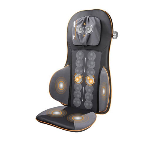 Het Medisana Shiatsu massagekussen MC 826 bevordert het welzijn na een vermoeiende dag. Het massage effect blijkt bijzonder effectief bij een verkrampt spierstelsel en vermoeid weefsel. Bij het bijkomen van dagelijkse stress biedt het massagekussen een aangename ontspanning.Het Comfort Shiatsu-massagekussen MC 826 is uitgerust met 4 draaiende massagekoppen voor de Shiatsu-massage voor de drie zones: bovenrug, onderrug en gehele rug. Daarnaast is het kussen voorzien van 2 Shiatsu-massagekoppen voor de nek die automatisch in hoogte kan worden versteld.Bovendien is de MC 826 uitgerust met een programmeerbare klopmassage in het ruggedeelte. Deze kan worden ingesteld in drie verschillende intensiteiten en geeft een heerlijke rustgevende klopmassage, die minder intensief is dan de Shiatsu massage maar zeker zo effectief is voor de dieperliggende spieren en bindweefsel.Buiten de rug biedt dit zeer complete massagekussen de mogelijkheid tot een luchtdrukmassage oftewel acupressuurmassage in 3 verschillende intensiteiten. Deze is voor de taille die de zijkant van het lichaam masseert ter verbetering van de balans en stabiliteit. Het zitgedeelte is uitgerust met kalmerende vibratiemassage die de bloedsomloop in het zitvlak en de bovenste dijbenen bevordert en daarmee de huid en onderliggende spieren revitaliseert. Deze unieke combinatie van intensieve shiatsu- klop- acupressuur- en vibratiemassage in combinatie met de optionele warmte maakt het massagekussen zeer doeltreffend en ontspannend. Het kussen is eenvoudig te bedienen dankzij de praktische afstandsbediening.