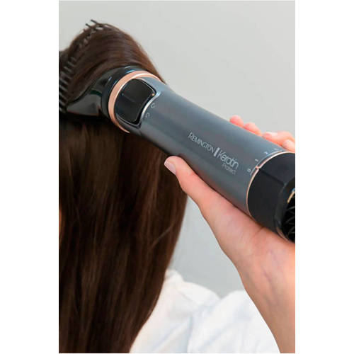 Een oogverblindende look is nu binnen handbereik dankzij de Keratin Protect Rotating Air Styler: een haardroger en borstel in één. Creëer een professioneel resultaat zonder het gestuntel met een aparte föhn en ronde borstel. Maar vanaf nu oogst ook jij bewonderende blikken op elke party met glanzend haar vol volume. De Keratin Protect Rotating Air Styler, uitgevoerd in chique lichtgrijs en roségoud, is speciaal ontworpen om een glanzende, soepelvallende en professionele look te creëren met slechts één apparaat.