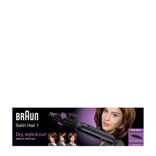 Droog en stijl in één bewegingMet de Braun Satin Hair 1 krulborstel creeër je eenvoudig verschillende stijlen.Stijl en droog in een keer, terwijl het je haar met een unieke Braun technologie beschermt. Maak authentieke '1920 looks' met schattige krullen, stijl je pony voor een gaaf, verfijnd effect, krijg volume bij de wortels omje stijl te verbeteren of vorm flicks op elke manier dieje wilt.Roll-out-functieMet de speciaal ontworpen roll-out-functie kan je stijlen zonder het verstrengelen en breken vanje haar. Elk onderdeel van het haar is gemakkelijk en soepel vrij te geven. PersonalisatieIndividuel stylen vereist individuele instellingen. Braun' s 2-temperatuur-instellingen passen de warmte en de luchtstroom naar je persoonlijke behoeften aan. Je kunt er zeker van zijn dat de warmte en de luchtstroom altijd precies goed voor je haartype is, zodat je haar niet zal uitdrogen tijdens het stijlen.Verschillende looksKrullen: Zacht, glanzend, natuurlijk uitziende krullen zijn een all-time favoriet.Creëer je eigen krullen look met Braun Satin Hair 1 airstyler.Flicks: Geef je look de ultieme kick met flicks!Ze zijn de moderne twist voor elke stijl, en ze kunnen gemakkelijk worden bereikt met de Braun Satin Hair 1 airstyler. Volume: Met Braun Satin Hair 1 airstyler, is luxe volume slechts een styl-en droog stap weg.Klik de volume vingers op de airstyler en beweeg het apparaat in kleine cirkels boven uw hoofd. De ingenieuze volumizer lift uw haar aan de wortels en verhoogt het volume.