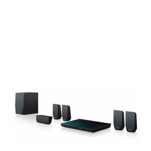Deze Sony BDV-E2100 5.1 3D Home cinema set, kleur zwart, met blu-ray speler is Full HD, voorzien van Near Field Communication (NFC), heeft ingebouwde Wi-Fi en bluetooth. De 4 sattelietluidsprekers en de subwoofer hebben een uitgangsvermogen van 1000 Watt, wat de audio meer effect geeft. De Bass Boost van de home cinema set produceert vol basgeluid. Ook het streamen van online entertainment is eenvoudig.Full HDDe Sony BDV-E2100 5.1 3D Home cinema set met blu-ray speler is Full HD, waardoor je van 3D- films en televisie kunt genieten. De beelden zijn realistisch en vloeiend, waardoor je nog meer van de details kunt genieten. Blu-ray films hebben details die 5 keer beter zijn dan dvd's. Met de Triluminos-kleuren geniet je van prachtige beelden en een groot kleurenspectrum, dat scènes voorziet van diepte. Ingebouwde Wi-Fi en bluetoothVia de ingebouwde Wi-Fi maak je eenvoudig verbinding met het internet. Zo kun je draadloos entertainment streamen vanaf je thuisnetwerk en het internet zonder dat je last hebt van allerlei kabels. Wanneer je een smartphone hebt die over bluetooth beschikt, kun je deze via bluetooth verbinding laten maken met je home cinema set om zo je favoriete muziek te streamen. Near Field CommunicationDeze zwarte home cinema set beschikt over Near Field Communication, wat een contactloze communicatiemethode is. Met de Near Field Communication hoef je de home cinema set alleen maar aan te raken met je smartphone of tablet om je muziek direct via bluetooth af te kunnen spelen.
