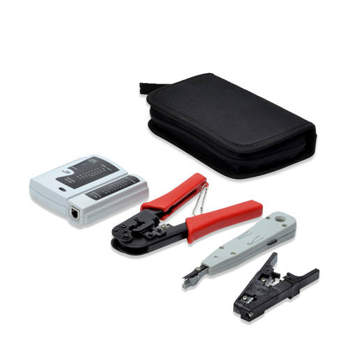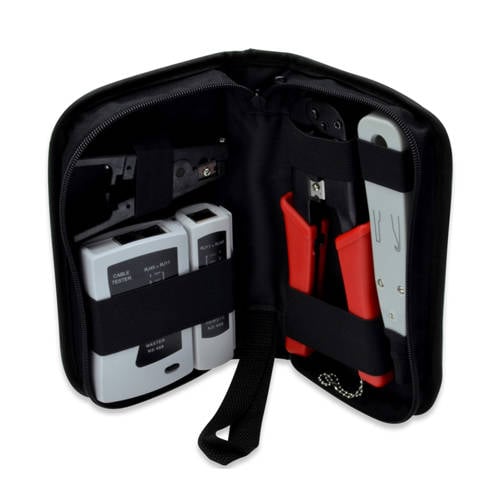 Deze netwerk installatieset van Digitus bestaat uit o.a. een RJ-45 tang, LAN kabeltester, kabelstripper (9V batterij niet meegeleverd) in handige etui.