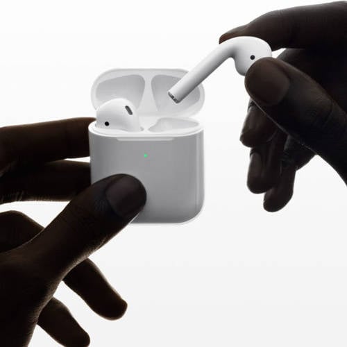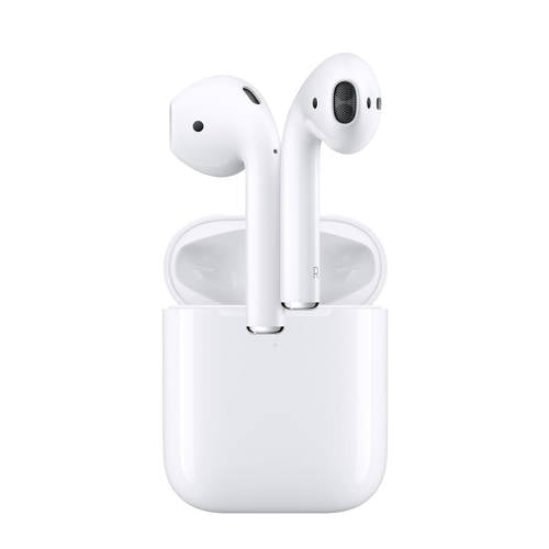 Met deze AirPods is draadloos luisteren nog makkelijker. Haal ze uit de oplaadcase en ze zijn klaar voor gebruik met je iPhone, Apple Watch, iPad of Mac. AirPods configureer je met een simpel tikje. Daarna gaat alles als vanzelf. Ze gaan automatisch aan en blijven verbonden met je devices. Ze detecteren wanneer je ze in hebt. En pauzeren wanneer je ze uitdoet.Siri ondersteuningWil je het volume aanpassen, van nummer veranderen, een telefoontje plegen of de weg vragen? Zeg gewoon “Hé Siri” en doe je verzoek. Je kunt naar wens één of beide AirPods gebruiken. En met twee tikjes muziek of podcasts afspelen of overslaan.Lekker lang luisterenEén keer opladen is goed voor 5 uur luistertijd en 3 uur gesprekstijd. En met de draadloze oplaadcase kun je je AirPods meerdere keren extra opladen voor meer dan 24 uur batterijduur. Opladen gaat heel snel. Een kwartiertje in de case is goed voor 3 uur luistertijd of 2 uur gesprekstijd.Handsfree bellenAirPods worden aangestuurd door de compleet nieuwe Apple H1-koptelefoonchip en detecteren door middel van optische sensoren en een versnellingsmeter wanneer ze in je oren zitten. Of je nu één of beide AirPods gebruikt, de H1-chip stuurt automatisch het geluid door en schakelt de microfoon in. En als je aan het bellen bent of tegen Siri praat, zorgt een extra versnellingsmeter samen met straalvormende microfoons dat het externe geluid wordt weggefilterd, zodat je stem beter hoorbaar is.Geschikt voor:- iPhone, iPad of iPodtouch met iOS12.2 of hoger- AppleWatch met watchOS5.2 of hoger- Mac met macOS10.14.4 of hoger- AppleTV met tvOS12.2 of hoger