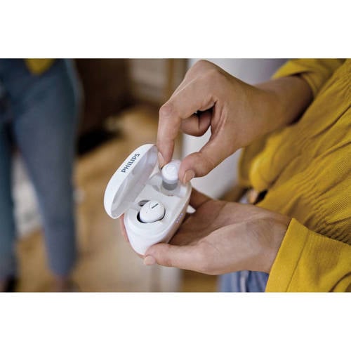 Draadloos is de toekomst, ook bij jouw audio-ervaring! Deze Philips SHB2505BK/10 draadloze in-ear oordopjes zijn volledig draadloos en leveren tevens een hoge kwaliteit, een win-win situatie dus.Bij de oordopjes krijg je een oplaadcase geleverd zodat je de oordopjes naast opbergen ook gelijk kunt opladen. Deze oplaadcase heeft nog een extra voordeel: hij kan tevens dienen als en powerbank voor jouw telefoon. Op deze manier blijf je dus altijd verbonden, zowel je oordopjes als je telefoon.Deze Philips in-ears hebben zachte, rubberen vleugeltips waardoor de oortjes comfortabel zitten, ook voor een langere tijd. De oortjes worden geleverd met verschillende maten vleugeltips zodat je altijd jouw juiste maat vindt..Met de ingebouwde microfoon kun je eenvoudig handsfree bellen en dankzij de krachtige 6 mm drivers hoor je ieder detail. Zodra je de oortjes uit de oplaadcase haalt verbinden ze met jouw telefoon. De oordopjes onthouden namelijk het laatste gekoppelde apparaat.