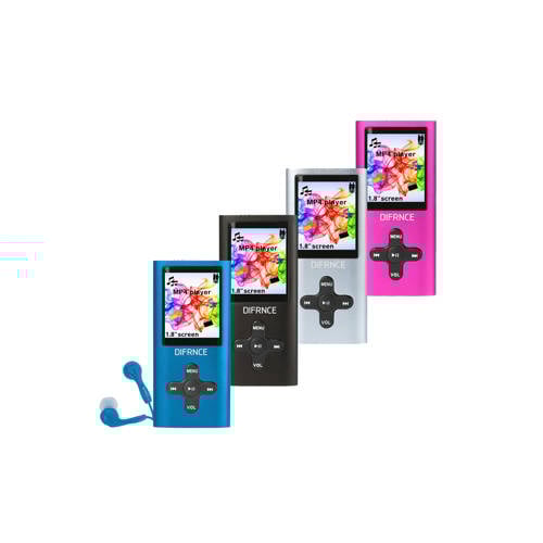 De Difrnce MP1851 is een compacte MP4 speler met een 1,8 inch display en 4GB intern geheugen. Deze MP4 speler speelt naast muziekbestanden (MP3, WMA) ook videobestanden (AVI), fotobestanden (JPEG, BMP) en tekstbestanden (TXT) af. Via de opgeladen ingebouwde batterij kun je ongeveer 8 uur muziek luisteren en 2,5 uur video's bekijken. De MP1851 wordt geleverd inclusief USB kabel en in-oortelefoon. Verkrijgbaar in verschillende kleuren.