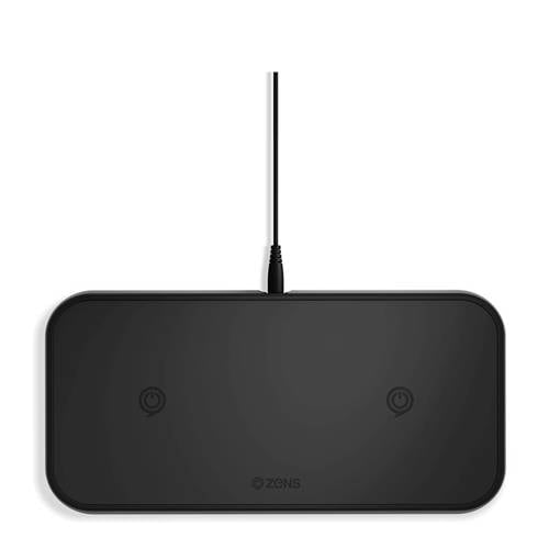 Draadloze dubbele lader van Zens. Met deze lader kun je 2 telefoons tegelijk opladen met de Qi Wireless Charge-technologie. Zeer eenvoudig in gebruik: leg je telefoon op de lader en hij begint automatisch met laden. Door het hoge vermogen van 10W wordt de telefoon extra snel opgeladen. (mits je smartphone hier geschikt voor is.)