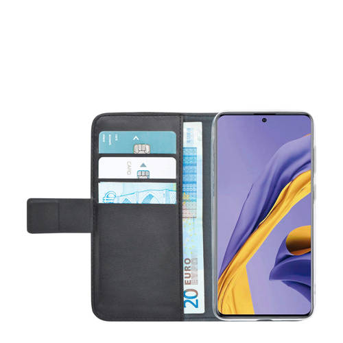 Azuri telefoonhoesje Walletcase Samsung Galaxy A51 (Zwart)Maak je smartphone helemaal af met deze stijlvolle Azuri booklet cover. Deze heeft een handige magnetische sluiting waardoor het tasje mooi dicht blijft.Alle openingen bereikbaarDe uitsparingen aan weerszijden zorgen ervoor dat de knoppen en aansluitingen gewoon toegankelijk blijven. Ook is er een opening voor de camera en flits aanwezig.Klap hem uitHet is mogelijk om de booklet cover in stand te plaatsen. Ideaal voor het bekijken van je foto's, favoriete video’s of gewoon om je handen vrij te houden tijdens een videochat.Ruimte voor pasjesAan de binnenkant zijn 3 kaartsleuven voorzien en zelfs een speciale gleuf om bijvoorbeeld briefgeld in weg te steken. Met deze hoes kan je jouw portemonnee dus gewoon thuislaten.