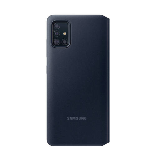 Samsung telefoonhoesje walletcase Samsung Galaxy A51 (Zwart)De praktische walletcover biedt je bescherming tegen vallen en stoten en is een handige opberghoes voor belangrijke pasjes. In de opberghoes aan de binnenkant kun je de pasjes die je dagelijks gebruikt gemakkelijk kwijt.Aan alle kanten beschermdDe S View Wallet Cover voor de Galaxy A51 heeft een slank, maar stevig ontwerp en beschermt je telefoon aan alle kanten.Gemakkelijk toegang met de S View CoverDe S View Wallet Cover voor de Galaxy A51 heeft een duidelijk minivenster en een slimme sensor, zodat je gemakkelijk oproepen kunt ontvangen, berichten kunt zien en andere belangrijke functies kunt gebruiken zonder de cover te openen.