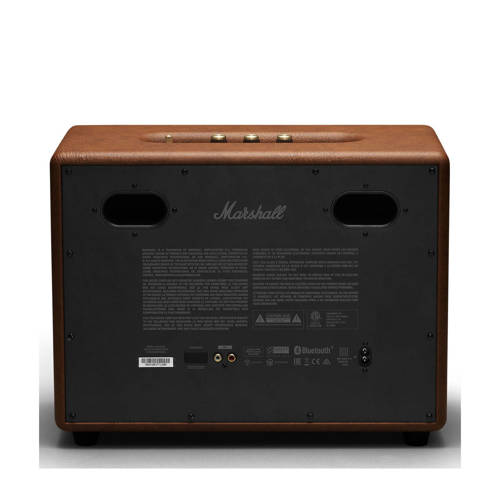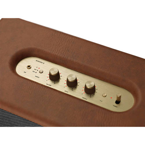 Het merk Marshall staat bekend om zijn speakers die zowel van binnen als van buiten klasse uitstralen, zo ook deze Woburn II Bluetooth speaker. Je bedient deze speaker, die uitermate goed geschikt is voor middelgrote tot grote ruimtes, via de eenvoudige Marshall app. Middels deze app kun je met twee personen tegelijk muziek afspelen via de speaker, zo ben je nooit alleen de DJ!De speaker heeft een leren omhuizing met daarbij een gouden afwerking wat zorgt voor een stijlvol geheel. Bovenop de speaker vind je knoppen om de bas, treble en het volume aan te passen naar eigen smaak. Via Bluetooth verbind je jouw apparaten aan de speaker om je favoriete muziek af te spelen. Het is tevens mogelijk om via de AUX-ingang muziek af te spelen. Let op: de speaker moet aangesloten worden op netstroom waardoor deze niet draadloos is.Let op: Een accu ontbreekt. Dit apparaat moet dus op netstroom aangesloten worden