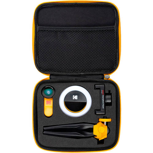 Geef de foto’s die je met je smartphone maakt de professionele touch met deze handige kit van Kodak. Zo kun je, al je creativiteit kwijt en kom je zelf ook nog eens op de foto met een hele groep. Deze fotokit bevat de volgende onderdelen. - Ultra Wide of groothoek lens: Pas meer beeldmateriaal in het frame met een breder beeld. Voor bijvoorbeeld panorama opnamen.- Macro lens: Je kunt tot vijftien keer dichterbij uw onderwerp komen en de kleinste details vastleggen.- Statief voor zowel horizontale als verticale opnamen. Met Bluetooth-sluiter voor camerabediening.- Ringlicht: Bevestig het ringlicht aan de hoek van je smartphone zodat je een professionele belichting hebt voor portretfoto’s- Travel Case: Om alle accessoires in op te bergenIedereen tegelijk op de fotoDoor het statief kan je gemakkelijk je smartphone stabiel neerzetten zodat je niet bang hoeft te zijn voor een bewogen foto. Natuurlijk kan je hem ook gebruiken voor de leukste groepsfoto. Zet iedereen neer en maak de foto met de Remote Bluetooth Shutter.