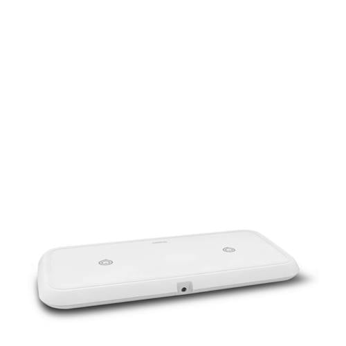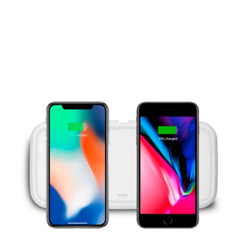 Draadloze dubbele lader van Zens. Met deze lader kun je 2 telefoons tegelijk opladen met de Qi Wireless Charge-technologie. Zeer eenvoudig in gebruik: leg je telefoon op de lader en hij begint automatisch met laden. Door het hoge vermogen van 10W wordt de telefoon extra snel opgeladen. (mits je smartphone hier geschikt voor is.)