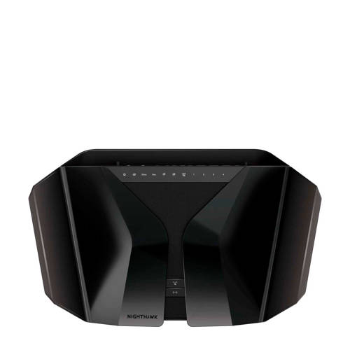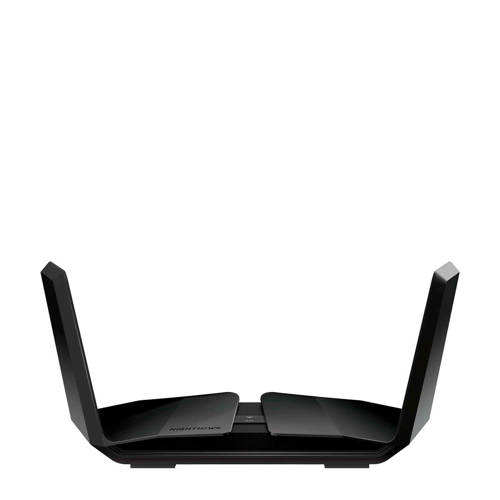 De NETGEAR Nighthawk AX12 12-Stream AX6000 WiFi-router (RAX120) ondersteunt de nieuwe 802.11ax WiFi-standaard (ook bekend als Wi-Fi 6). AX WiFi is gemaakt om maximaal vier keer meer gegevenscapaciteit te leveren dan vorige standaarden en beschikt over geavanceerde technologieën zoals OFDMA, MU-MIMO, 160 MHz kanaalondersteuning en 1024 QAM om de efficiëntie van het netwerk te verbeteren. De Nighthawk AX12 beschikt over een 64-bits 2,2 GHz quad core-processor die is ontworpen om Gigabits bijna zonder CPU-belasting over te brengen. AX WiFi biedt OFDMA (Orthogonal Frequency-Division Multiple Access) dat de netwerkcapaciteit aanzienlijk vergroot ten opzichte van de huidige WiFi en de latentie vermindert voor een betere WiFi-ervaring, waardoor het ideaal is voor een huishouden met veel WiFi-apparaten. Daarnaast versterken acht krachtige antennes de WiFi-signalen voor een maximaal bereik en een betrouwbare dekking. Nighthawk AX12 is ook NETGEAR's eerste router voor thuisgebruik met een 5Gig-poort.SnelheidProfiteer van supersnelle draadloze verbindingen voor betere 4K- en 8K UHD-streaming, games en `--+-+-videoconferencing. Snelheden tot maximaal 6 Gbps 1,2 en 4,8 Gbps met 12-Stream verbinding. 8x8 MU-MIMO alles gaat sneller door het gelijktijdig streamen naar meerdere apparaten. Krachtige quad core-processor; een robuuste 2,2 GHz-processor optimaliseert draadloze, bekabelde en WAN-naar-LAN-prestaties. 12-Stream WiFi een efficiënt netwerk en hogere snelheden8 WiFi-streams (vier op de 2,4 GHz band en 8 op de 5 GHz band) zodat je 6 keer zoveel apparaten kunt gebruiken als bij gewone 2x2 AC WiFi. Meer WiFi-streams per band zorgen dat de router aanzienlijk meer gegevens kan verzenden naar en ontvangen van apparaten, omdat er meer bandbreedte beschikbaar is en er minder opstoppingen optreden voor alle apparaten op het netwerk. Met betrouwbare verbindingen naar alle aangesloten apparaten kunnen er nu meer apparaten dan ooit tegelijk op je netwerk aangesloten zijn.Nieuwe Multi-Gigabit bekabelde snelhedenLaat je apparaten via de bestaande bekabeling op de hoogste snelheid draaien. De multi-gigabit Ethernet-poort op de AX12 bied vijf keer hogere snelheden dan de bekabelde snelheid van een gewone Gigabit-poort. Je NAS-apparaten (Network Attached Storage), switches en andere apparaten met snelheden van 2,5 Gbps en 5 Gbps kunnen nu op volle capaciteit werken. Gebruik de vier gigabit Ethernet LAN-poorten om meer bekabelde apparaten aan te sluiten voor snellere bestandsoverdracht en ononderbroken verbindingen. Combineer twee gigabit Ethernet-poorten en verhoog de geaggregeerde snelheid voor bestandsoverdrachten nog verder. De Nighthawk AX12 is de eerste home router van NETGEAR met Multi-Gig-snelheden en een 5G/2,5G/1G Multi-Gig Ethernet LAN-poort.Krachtige WiFi voor het hele huisAcht krachtige antennes vergroten het draadloze bereik binnen en buiten. De antennes zijn vooraf geoptimaliseerd voor de beste WiFi-prestaties. Routersignalen worden versterkt om het bereik en de betrouwbaarheid te maximaliseren, zodat je WiFi op meer plaatsen kunt gebruiken. Geniet overal in huis van sterkere WiFi-signalen, of het nu gaat om gameconsoles in de kelder of beveiligingscamera's voor buiten.
