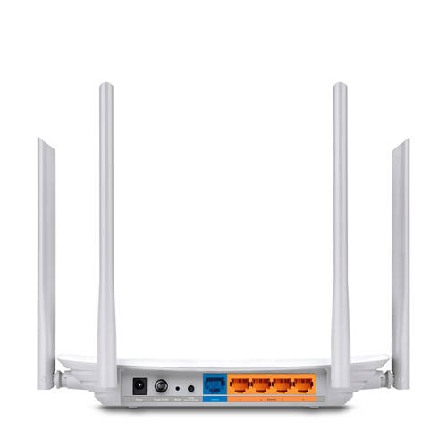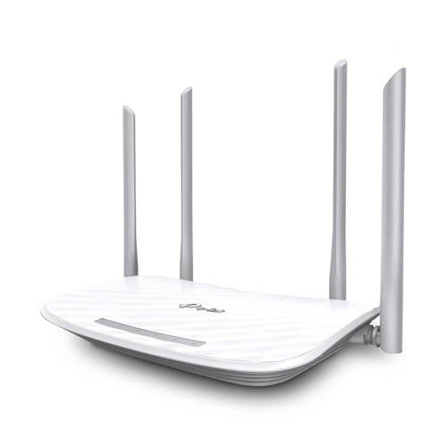Met de TP-Link Archer A5 profiteert je op je pc of laptop van drie keer snellere verbindingen dan met draadloze N of AC-technologie. Met 300 Mbps op de 2.4 GHz-band en 867 Mbps op de kristalheldere 5 GHz-band is de Archer A5 de beste keuze voor naadloos streamen in HD, online gamen en andere taken die veel bandbreedte opeisen. Vier goed geplaatste antennes zorgen voor goede en stabiele verbindingen. De geavanceerde antennetechnologie verhoogt de ontvangstgevoeligheid voor een grotere wifi-dekking in huis. Je kunt toezicht op je kinderen of medewerkers houden via bevoegde toegang aan geselecteerden. Maak gebruik van een zwartelijst om met sleutelwoorden de internettoegang te beperken. Ook is het gemakkelijk om je gasten gebruik te laten maken van een gastennetwerk. Zo kun je anderen gebruik laten maken van je netwerk, en je eigen prive gegevens beschermen. En met de Captive portal kunnen alleen bevoegde gasten gebruik maken van het netwerk. Apparaten zijn voorzien van een gebruiksvriendelijke verificatiemethode voor wifi-toegang. Deel je facebook-account met personen die verbinding maken met jouw netwerk. En installatie is heel eenvoudig dankzij de intuïtieve online interface en krachtige Tether app. Hierme kun u de Archer A5 binnen enkele minuten installeren. Met Tether kun je de netwerkinstellingen beheren vanaf ieder apparaat met Android of iOS, zoals ouderlijk toezicht en de toegangscontrole.- Interface4 x LAN-poort (10/100 Mbps)1 x WAN-poort (10/100 Mbps)- Externe Voeding: 9V DC / 0,85A- Type Antenne: 4 externe antennesDRAADLOZE FUNCTIES- Standaarden voor Draadloze Netwerken: IEEE 802.11n/g/b 2.4 GHz , IEEE 802.11ac/n/a 5 GHz- Frequentie:2.4 GHz en 5 GHz- Overdrachtssnelheid:2.4 GHz: tot 300 Mbps, 5 GHz: tot 867 Mbps- Ontvangstgevoeligheid 5 GHz: 11a 54M: -73 dBm, 11ac VHT20 MCS8: -68 dBm, 11ac VHT40 MCS9: -64 dBm, 11ac VHT80 MCS9: -60 dBm- Ontvangstgevoeligheid 2.4 GHz: 11g 54M: -76 dBm, 11n HT20 MCS7: -74 dBm, 11n HT40 MCS7: -71dBm- Draadloos Zendvermogen CE: - Draadloze FunctiesDraadloze radio in-/uitschakelen, WDS Bridge, WMM, draadloze statistieken- Draadloze Beveiliging64/128-bits WEP, WPA / WPA2, WPA-PSK/ WPA2-PSK-encryptieFUNCTIONALITEIT VAN DE SOFTWARE- Kwaliteit van de Dienst (QoS)WMM, bandbreedteregeling- WAN-Type: Dynamisch/statisch IP-adres/PPPoE/, BigPond/ /L2TP(Dual Access) /PPTP(Dual Access)- Management: Toegangscontrole, Lokaal beheer, Beheer op afstand- DHCP: Server, client, DHCP-clientlijst, adresreservering- Poort Doorsturen: Virtuele server, Port Triggering, UPnP, DMZ- Dynamische DNS: DynDns, Comexe, NO-IP- VPN-DoorvoerPPTP, L2TP, IPSec- Toegangsbeheer: Ouderlijk toezicht, lokaal beheer, hostlijsten, access schedule, regelbeheer- Firewallbeveiliging: DoS, SPI-firewall, IP-adresfilter/MAC-adresfilter/domeinfilter, IP- en MAC-adres - ProtocollenOndersteunt IPv4 en IPv6- Gastnetwerk2.4 GHz-gastnetwerk × 1, 5 GHz-gastnetwerk × 1OVERIGE- Certificatie: CE, FCC, RoHS- Systeemvereisten: Microsoft Windows 98SE, NT, 2000, XP, Vista™ of Windows 7, Windows 8/8.1/10, MAC OS, NetWare, UNIX of LinuxAfmetingen (hxbxd): 3,7x23x14,5 cm
