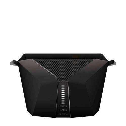 Deze draadloze router van Netgear ondersteunt de nieuwste generatie Wi-Fi 6-technologie voor een grotere netwerkcapaciteit met een sterk signaal voor al uw aangesloten apparaten. De Nighthawk WiFi-router levert een hoger niveau van Gigabit WiFi-connectiviteit, zodat u sneller verbindt met nieuwere apparaten en daar sneller op kunt streamen en downloaden. De krachtige dual-core processor met een volledig offloaded CPU verhoogt de prestaties van het gehele netwerk. OFDMA, 1024 QAM en 160 MHz kanaalondersteuning verbeteren de netwerkefficiëntie aanzienlijk en leveren wel 4 keer betere prestaties dan de vorige WiFi-standaarden. Snellere downloads, een betere game-ervaring en streamen wat je maar wilt, met deze Netgear router kan het allemaal.Supersnelle WiFi tot 3 Gbps (600 Mbps + 2,4 Gbps) draadloze snelheden.Verbeterde capaciteit - Wi-Fi 6 maakt gebruik van OFDMA om de capaciteit en efficiëntie van uw netwerk te verbeteren, zodat meer apparaten verbinding kunnen maken zonder daarbij uw WiFi te vertragen.Gigabit WiFi naar mobiele apparaten - sneller verbinding maken, streamen en downloaden naar nieuwere mobiele apparaten en computers.Ondersteuning van 160 MHz - maakt Gigabit-snelheden mogelijk voor mobiele apparaten die daarvoor geschikt zijn.Krachtige dual-core processor—soepele 4K UHD-streaming naar smart tv's, mobiele apparaten en gameconsoles.Extra DFS-kanalen – storingsvrije ervaring met het voordeel van extra kanalen.5 gigabitpoorten—meer bekabelde apparaten voor snellere bestandsoverdracht en ononderbroken verbindingen.Nighthawk-app—stel uw router eenvoudig in en haal meer uit uw WiFi.Automatische firmware-updates—de nieuwste beveiligingspatches voor de router.Werkt samen met bestaande WiFi-apparaten - achterwaarts compatibel met Wi-Fi 5 (802.11ac) en WiFi-standaarden van eerdere generaties.Kan worden gebruikt met Amazon Alexa en Google Assistant.
