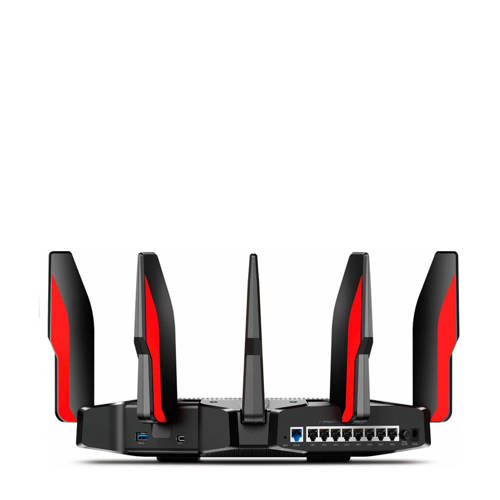Met de TP-Link Tri-band gaming router Archer AX11000 ben je voorzien van een extreem sterk netwerk met daarbij behorende snelheden. De AX11000 is uitgerust met wifi 6 en deze krachtpatser bereikt uitzonderlijke wifi-snelheden tot wel 10756 Mbps levert met een uitgebreid bereik. AX11000 levert 12 wifi-stromen met een snelheid van 10 Gbps: 4804 Mbps (5 GHz gamen) + 4804 Mbps (5 GHz) + 1148 Mbps (2.4 GHz) Game met een supersnelle verbinding Gamingband – een speciale gamingband voor jouw gamesessies zorgt ervoor dat jouw online games en de Netflix-streams in 4K van jouw gezinsleden niet meer strijden om bandbreedte. DFS breidt het beschikbare kanaal automatisch uit, dus maak gebruik van het vrije kanaal voor betere gameprestaties. Geen lag, win de strijd Gameversneller detecteert en optimaliseert gamestreams zodat je volledig in je game kunt blijven opgaan. Ook blijft het netwerk net zo snel als jouw reactiesnelheid.Bliksemsnel in de strijd tegen latentie Meer verbonden apparaten verhogen het plezier in plaats van de prestaties te vertragen. Deze router is voorzien van het revolutionaire OFDMA om de gemiddelde doorvoercapaciteit tot wel 4 keer te verhogen en latentie te beperken. Maak gebruik van de uitzonderlijk lage latentie om jouw samen met jouw team de vijanden te verslaan. Ken jouw netwerk Gamestatistieken tonen realtime latentie, speelduur en het systeemgebruik in één overzicht met een vernieuwd dashboard met een afgestemde gebruikersinterface. Zo heb je de volledige controle binnen handbereik. Ultieme aansluitmogelijkheden – 2.5 Gbps WAN-poort en acht gigabit LAN-poorten, twee USB 3.0-poorten van type A en type C voor uitgebreide aansluitmogelijkheden. Grondig geteste hardware De router is uitgerust met een 1.8 GHz quad-core processor en 1 GB RAM om een enorme doorvoercapaciteit aan te kunnen en latentie te voorkomen. Link Aggregation en USB 3.0-poorten van type C en type A zorgen ervoor dat je vrijwel elk apparaat kunt aansluiten op het thuisnetwerk.- De snelste wifi 6 gamingrouter – AX11000 levert 12 wifi-stromen met een snelheid van 10 Gbps: 4804 Mbps (5 GHz gamen) + 4804 Mbps (5 GHz) + 1148 Mbps (2.4 GHz)- Gameversneller – detecteert en optimaliseert gamestreams zodat je volledig in je game kunt blijven opgaan.- Gamebeveiliging – bescherm jouw accounts en documenten met behulp van het Homecare™-beveiligingssysteem van Trend Micro™.- Gamestatistieken – realtime latentie, speelduur en netwerkbronnen toewijzen via één overzicht met een afgestemde gebruikersinterface.- Ultieme aansluitmogelijkheden – 2.5 Gbps WAN-poort en acht gigabit LAN-poorten, twee USB 3.0-poorten van type A en type C voor uitgebreide aansluitmogelijkheden.- Krachtige processor – 1.8 GHz quad-core processor met 3 coprocessors zorgen dat het netwerk altijd optimaal presteert.- Zeer efficiënt – OFDMA verhoogt de gemiddelde doorvoercapaciteit en vermindert lag.Met groot wifi-bereikde 8 high-gain extern antennes leveren een sterk wifi-signaal in heel de woning. BSS Color-technologie garandeert naadloze en stabiele verbindingen door interferentie van het signaal uit de omgeving te voorkomen, terwijl Beamforming en Rangeboost zorgen voor een krachtiger netwerk met een groter bereik.De installatie is veel eenvoudigerDownload de Tether app om de Archer AX11000 via Bluetooth te installeren, volg de instructies op het scherm en binnen enkele minuten is het netwerk gereed.
