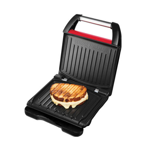 Deze George Foreman 25040-56 FAMILY contactgrill, in de kleur rood, heeft een vermogen van 1650 Watt. De strak afgewerkte, Amerikaanse grill bakt al je vlees en tosti's tot perfectie en zorgt voor veel minder vet in je eten. Hij zorgt er zelfs voor dat er tot 42% vet uit je eten wordt afgevoerd dankzij zijn gekantelde stand. Hierdoor komen overtollig vet en sap in het vastklikkende opvangbakje terecht waardoor je efficiënt en schoon kookt. Na gebruik veeg je de grill moeiteloos schoon en berg je hem gemakkelijk op in verticale of horizontale stand. Het sterke roestvrij staal maakt de grill tot een echte eyecatcher in je keuken.