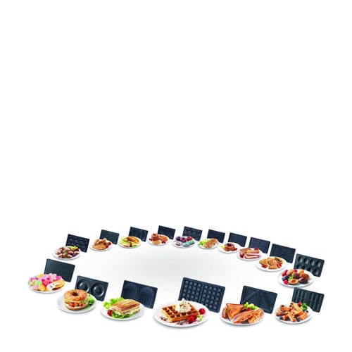 Met de Tefal contactgrill Snack Collection SW857D bereid je niet alleen snack of wafels maar zet heerlijke traditionele of wereldkeukengerechten op tafel. Laat je op elk moment van de dag verleiden door de heerlijk mogelijkheden van de platensets of geniet van nieuwe culinaire ervaringen! Het tosti- en wafelijzer Snack Collection en diens verzameling aan platen kan je niet missen! Een reeks aan recepten zullen voor heerlijke gerechten zorgen waar je in je eentje van kunt genieten of die je kunt delen met vrienden, familie of met zijn tweetjes... Voor een heerlijk ontbijt of brunch, een feestmaal of een echte gastronomische ervaring... De afneembare en verwisselbare platen zijn makkelijk op te bergen in hun dozensets. Daarnaast heb je de anti-aanbaklaag en vaatwasmachinebestendige platen in een handomdraai schoon!Ideaal om verschillende soorten gerechten in één apparaat te bereiden, dankzij de verwisselbare platenInclusief 2 verschillende platen voorzien van opbergbox: tosti-, en wafelplatenUit te breiden naar 16 verschillende platenMakkelijk schoon te maken dankzij de platen die voorzien zijn van de Tefal anti-aanbaklaagVoorzien van een aan-/uit schakelaar voor veilig gebruikPraktisch en netjes op te bergen dankzij de opbergdozenVaatwasmachinebestendigEenvoudig schoon te maken dankzij de vaatwasmachinebestendige platen.