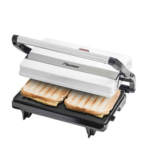 Deze Bestron APM123W contactgrill heeft een grilloppervlak van 2 x ca. 22,5 cm x 14 cm. De APM123W is ideaal om gemakkelijk en vetarm te contactgrillen, gelijkmatig bakken van beide zijden. Veelzijdig en snel inzetbaar voor het grillen en toasten van: panini’s, steaks, toast, groente, gamba’s, vlees en vis. De contactgrill is voor zien van een dekselvergrendeling en een grote hittebestendige handgreep. Inclusief diverse recepten in de gebruiksaanwijzing.Met GS-gecertificeerd keurmerk = extra hoge kwaliteit en veiligheidsstandaard.
