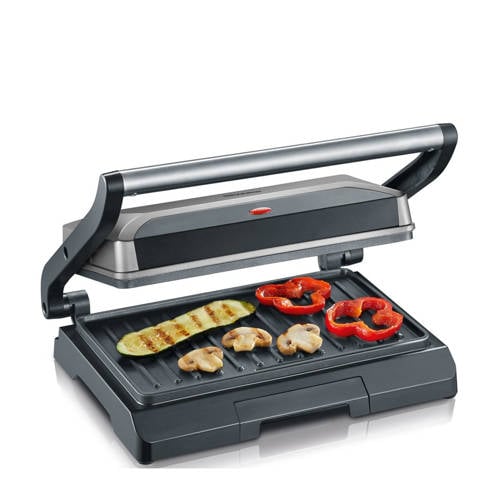 Met deze Sage contactgrill Adjusta Grill contactgrill maakt jij niet alleen heerlijke panini’s maar kun jij ook op een gezonde manier vlees, vis en groenten bereiden. Alles is mogelijk dankzij de 7 instellingen voor verstelbare hoogte en de geribbelde antiaanbakplaten voeren overtollig vet tijdens het grillen af in verwijderbare opvangbakje. De Adjusta Grill heeft een vermogen van 1500 Watt en de grillplaten zijn voorzien van een anti-aanbaklaag. Deze contactgrill is dankzij z’n compacte design ruimtebesparend verticaal op te bergen en door de geïntegreerde snoeropbergruimte zit het snoer nooit in de weg.