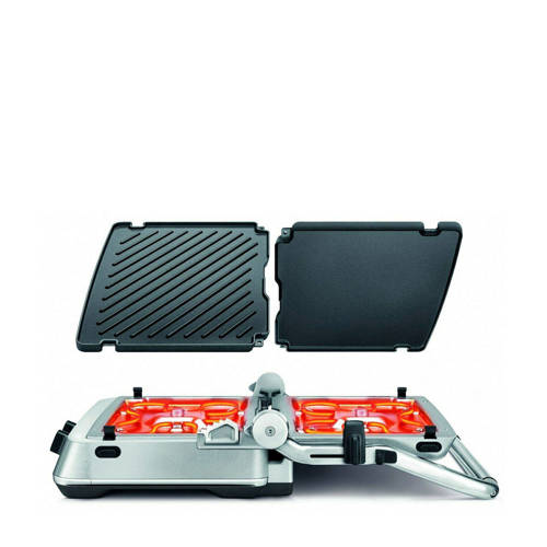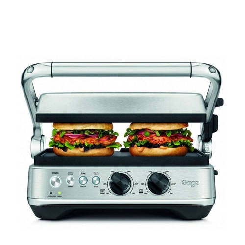 Deze contactgrill van Sage is meer dan een normale contactgrill. Of je nu een tosti wilt maken of een sappige hamburger, met deze contactgrill bereid je dit in een handomdraai.De contactgrill heeft drie programma's waarmee je zorgeloos gerechten bereidt. Met één druk op de knop stel je de temperatuur in voor jouw burger, steak of panini. De platen zijn gemakkelijk uit de grill te halen en kunnen in de vaatwasser. Je kunt kiezen tussen de geribbelde kant of de platte kant. Het vet stroomt vanzelf in de opvangbak waardoor je je geen zorgen hoeft te maken over vet wat op het aanrecht druipt.