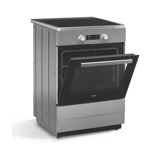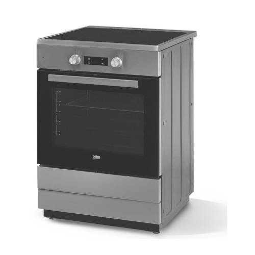 Dit Beko FSM 67320GXS GW keramisch fornuis met vitro keramisch kookvlak heeft een conventionele elektrische oven met een inhoud van 72 liter. 2 van de 4 kookzones zijn dynamisch en kunnen vergroot en verkleind worden. Het maximale vermogen van de kookzones is 2400 W en dit is krachtig genoeg om een lekker wokgerecht te bereiden. Met de multifunctionele oven, die voorzien is van een grill, hetelucht en boven- en onderwarmte, kun je eindeloos experimenteren met recepten. Veel fornuizen hebben het energielabel A, zo ook de FSM67320GXS. Het nuchtere karakter is kenmerkend voor dit model. De FSM67320GXS is namelijk uitermate geschikt voor huishoudens waar graag gekookt wordt en gebruikersgemak voorop staat.AansluitenOm dit elektrische fornuis correct aan te sluiten moet je beschikken over een 3-fase aansluiting. Dat is dus niet de standaard aansluiting van 220 volt. Het fornuis wordt zonder stekker geleverd. Wij kunnen dit fornuis niet voorje aansluiten. Verzekeringsmaatschappijen eisen dat een erkende installateur de aansluiting verzorgt.Met o.a.:- Grillfunctie- Boven- en onderwarmte- Onderwarmte- Boven- en onderwarmte en hetelucht- Ventilator- Hetelucht- Oveninhoud:72 liter- Timer- 2 bakplaten- 1 rooster- Ovenverlichting- Aansluitwaarde 10000 wattKookzones)- Vermogen kookzone 1: 750-2200 W- Vermogen kookzone 2: 1700 W- Vermogen kookzone 3: 1200 W- Vermogen kookzone 4: 24000 W- Vermogen grill 2200 W- Temperatuur oven 50- 250°CAfmetingen en gewicht- afmetingen (hxbxd): 85x60x60 cm- gewicht: 53 kg