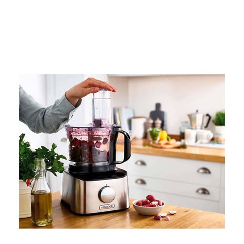 De Kenwood FDM307SS is foodprocessor die door zijn compacte en duurzame design in elke keuken past en dé musthave foodprocessor is voor elke beginnende kok. De FDM307SS is voorzien van een krachtige 800 Watt motor voor optimale prestaties voor al het snij/hak- en raspwerk, 2 snelheden met pulse functie. De foodprocessor is door het interlock mechanisme eenvoudig en veilig in gebruik: de blender en mengkom passen op hetzelfde aandrijfpunt.De FDM307SS wordt geleverd met een 2.1 liter mengkom, diverse accessoires zoals een 1.2 liter glazen blender, een garde, tweezijdige snijschijven (fijn en grof), extra fijne raspschijf, RVS snijmes, deegaccessoire, citruspers, multimolen, sapcentrifuge en snoeropbergmogelijkheid.
