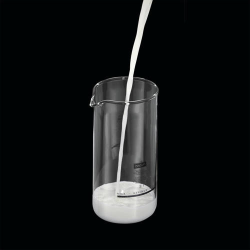 Wil jethuis een overheerlijke latte macchiato of cappuccino maken? Dan ben jebij de Bodum Melkopschuimer aan het goede adres! Jeklopt met de melkopschuimer gemakkelijk een lekkere, luchtige schuimlaag voor jouw latte macchiato of cappuccino. De melkopschuimer heeft een inhoud van 80 cl.Daarnaast heeft de melkopschuimer een praktische schenktuit, waardoor het melk makkelijk over te schenken is naar een ander glas. Op het glas van de melkopschuimer staat een streep aangegeven, zo kun jegemakkelijk zien hoe veel de juiste hoeveelheid is om melk op te schuimen.De schenkkan is gemaakt van borosilicaatglas. Boriumsilicaat is hittebestendig glas dat een langere levensduur heeft dan de meeste andere glassoorten. Borosilicaatglas is minder breekbaar dan het lijkt. Daarnaast wordt het borosilicaatglas ook gebruikt in labratoriums, het glas zet minder uit bij verwarming en krimpt minder bij afkoeling.