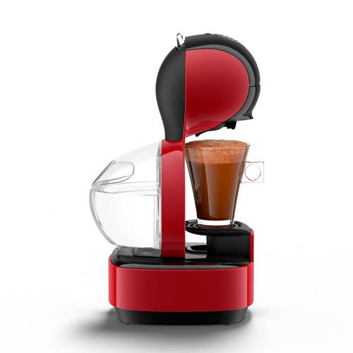 De Krups KP1305 Nescafe Dolce Gusto Lumio in de kleur rood is erg compact en neemt weinig ruimte in op jouw aanrecht. Met de handmatige besturing kun je heel simpel de lekkerste creaties maken, helemaal naar jouw smaak. En dankzij het hoge druk systeem van maximaal 15 bar in combinatie met de Nescafé Dolce Gusto capsules, creëer je het fluweelachtige crémalaagje op je espresso of de volle melkkraag op je Latte Macchiato of Cappuccino. De Lumio machine beschikt over een eco modus waarmee de Dolce Gusto vanzelf uitschakelt wanneer je hem 1 minuut niet gebruikt. Zo verbruikt hij zo min mogelijk energie.Compact designHet compacte formaat neemt weinig ruimte in op jouw aanrecht. Hoge druk systeemTot 15 bar Multi-beverage systeemMet de Nescafé Dolce Gusto capsules kun je allerlei soorten dranken creëren, van koffie tot thee tot chocolade dranken, de keuze is aan jou. Auto stopDe machine stopt automatisch bij het einde van de bereiding. Warm & KoudWarme en koude dranken kunnen beide worden gecreëerd.Energie besparende ECO modeDe machine gaat vanzelf uit na 1 minuut. Specificaties- Inhoud waterreservoir: 1 liter- Kleur: rood- Garantietermijn: 2 jaarAfmetingen en gewicht- Afmetingen (hxbxd) 22.3x17.6x36.8 cm- Gewicht 2.5 kg